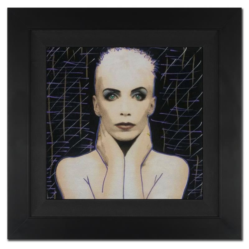 Annie Lennox is a one-of-a-kind hand-pulled silkscreen and mixed media painting on canvas by Ringo (Daniel Funes) - protege of Andy Warhol's apprentice, Steve Kaufman! This piece is hand signed by the artist and Includes Certificate of Authenticity! Measures approx. 20" x 20" (with frame); 16" x 16" (image).