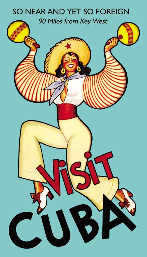 Artist: Anonymous - Title: Visit Cuba - Medium: Fine Art Reproduction Giclee on Canvas - Image Size: Approximately 20 inches x 11.5 inches - Unframed on Unstretched Canvas -