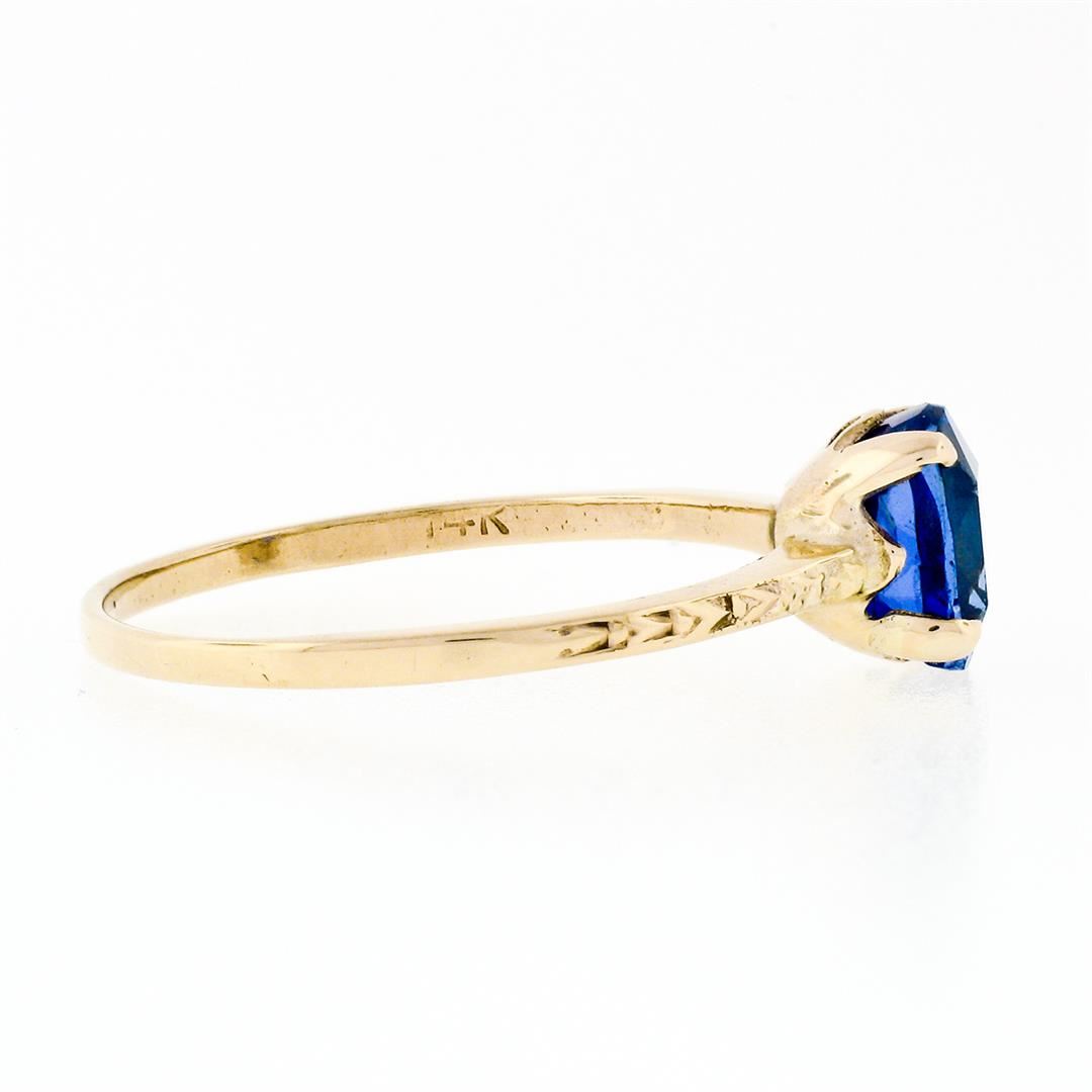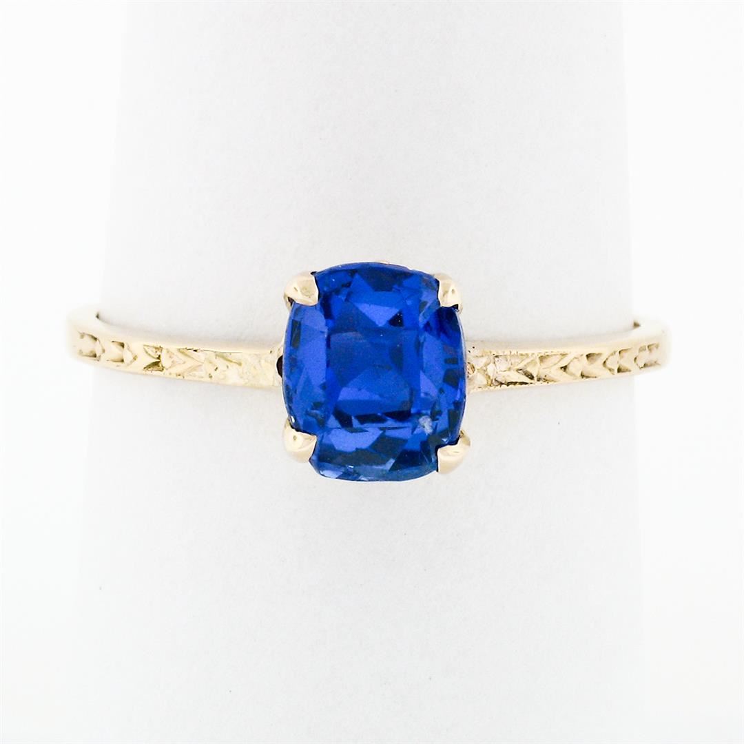 An antique victorian solid 14k yellow gold solitaire ring, with 1 Gia certified cushion cut natural sapphire (1.95ct). The ring is size 8, weighs a total of 1.80 grams, and measures 7.11mm wide. Comes with all original relevant certifications.