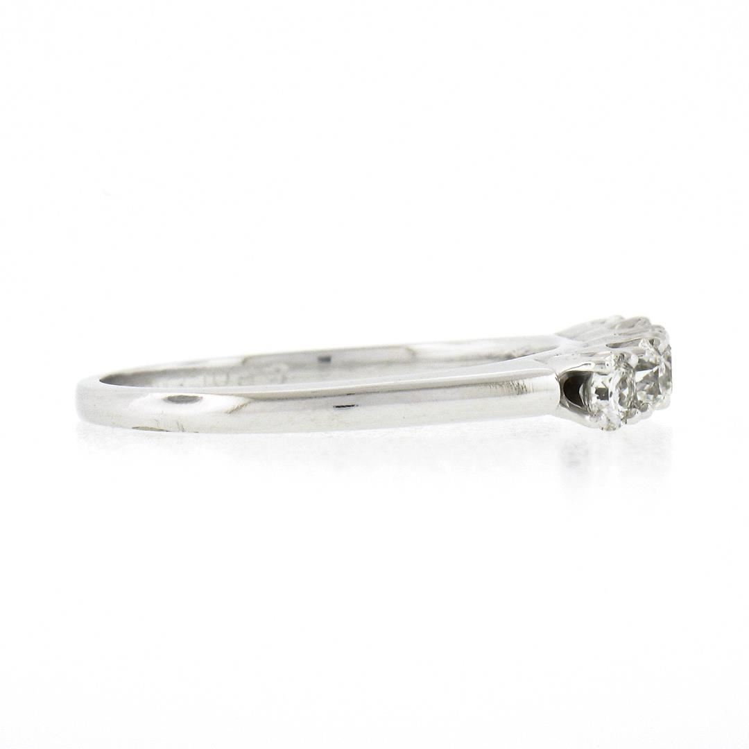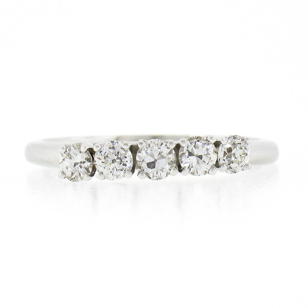 An antique solid 14k white gold band ring, with 5 old european cut natural diamonds (H/I - VS1-SI2 ; 0.60ctw). The ring is size 8.0, weighs a total of 2.60 grams, and measures 3.25mm wide.