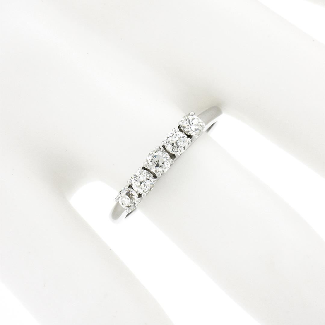 An antique solid 14k white gold band ring, with 5 old european cut natural diamonds (H/I - VS1-SI2 ; 0.60ctw). The ring is size 8.0, weighs a total of 2.60 grams, and measures 3.25mm wide.