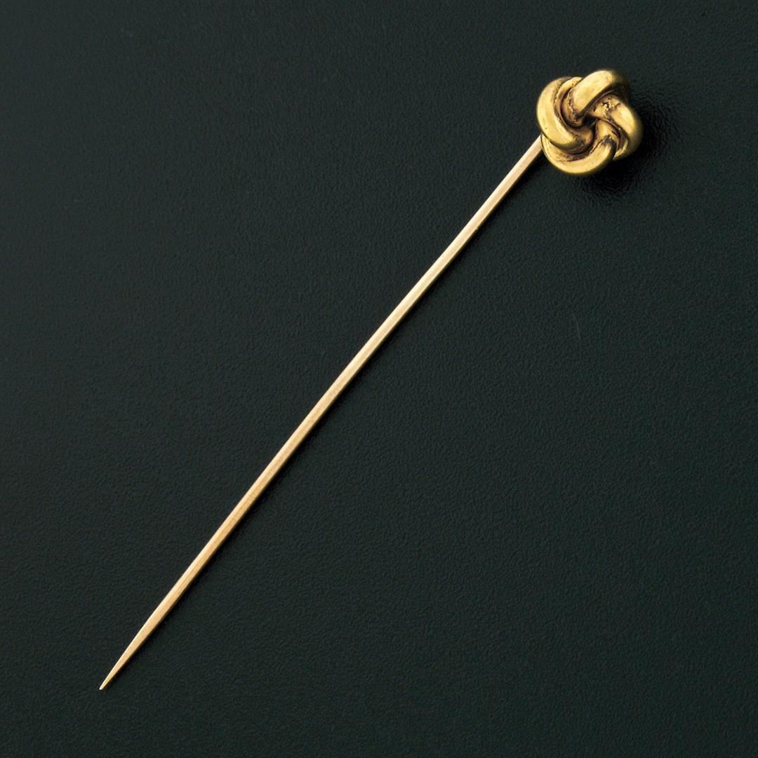 An antique solid 18k yellow gold knot stick pin. Measures 64.30x8.85mm and weighs a total of 1.23 grams.