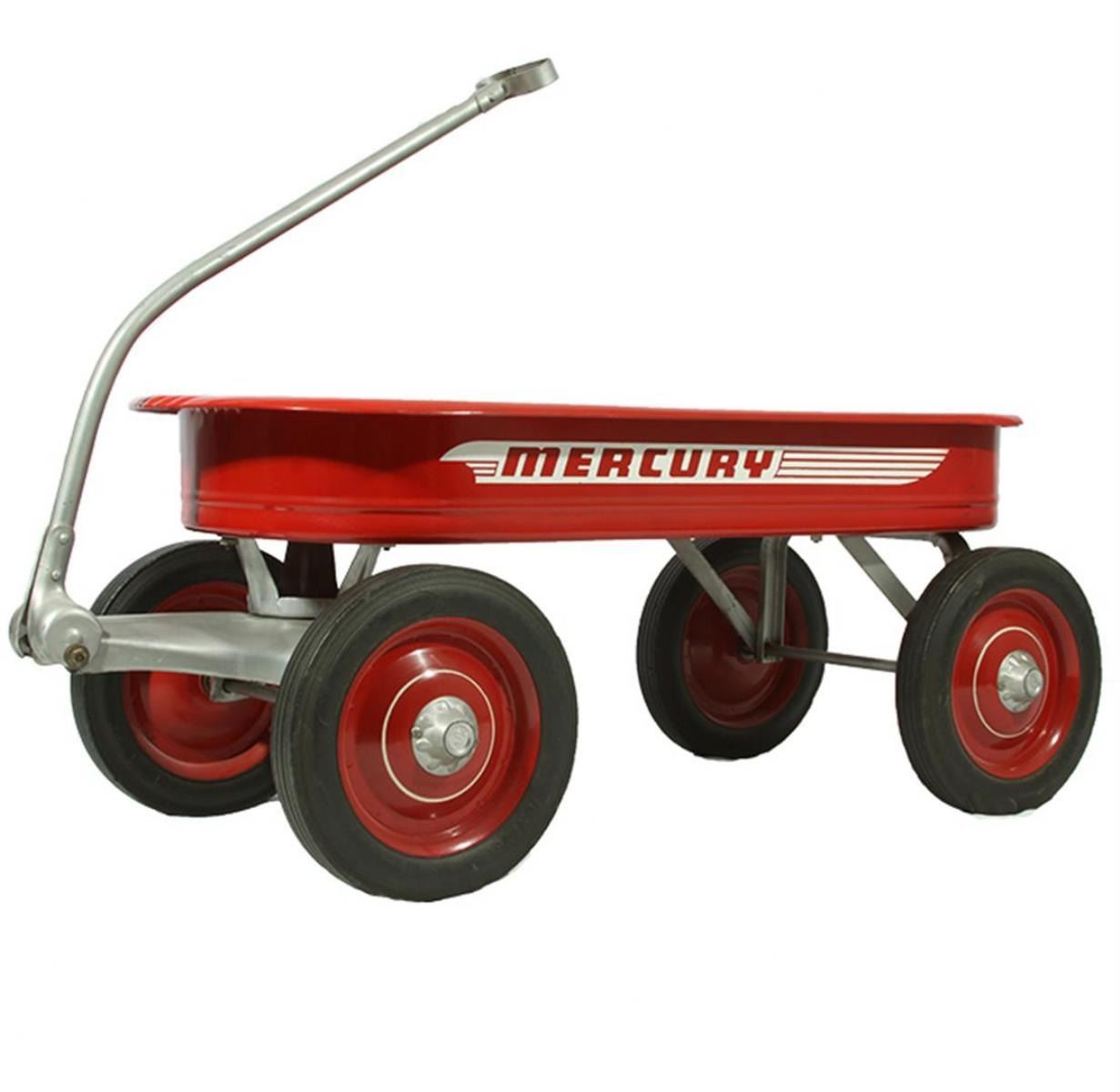 One antique 1940's wagon featuring: Rubber wheels, red painted metal body, MERCURY on both sides, and USA painted inside.