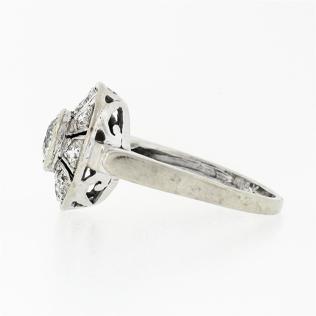An antique art deco solid 14k white gold platter ring, with 9 old european cut natural diamonds (G/H - VS1/VS2; 0.70ctw). The ring is size 4, weighs a total of 3,03 grams, and measures 11.8mm wide.