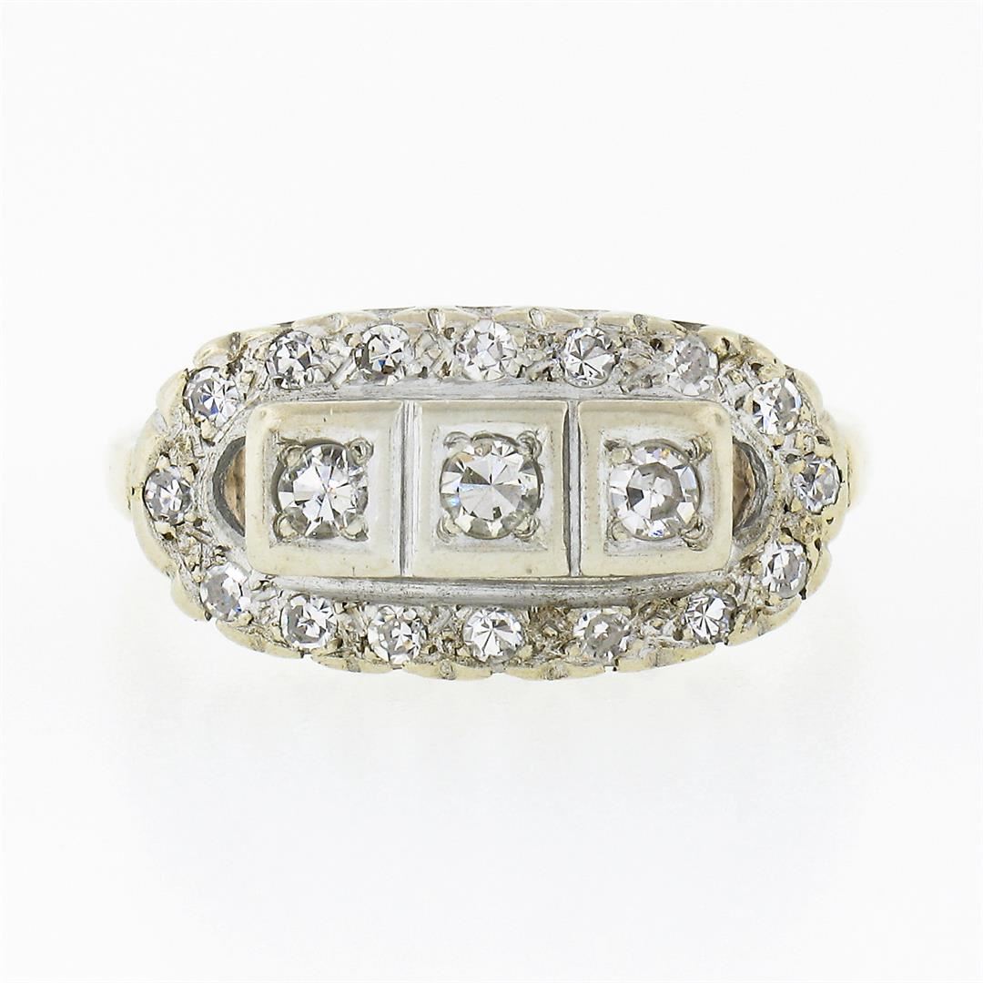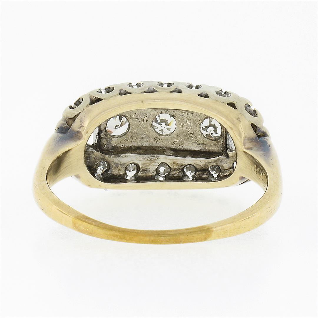 An antique solid 14k yellow & white gold ring, with 19 old single cut natural diamonds (G/H- VS1/VS2 ; 0.35ctw). The ring is size 7.0, weighs a total of 3.75 grams, and measures 9.40mm wide.