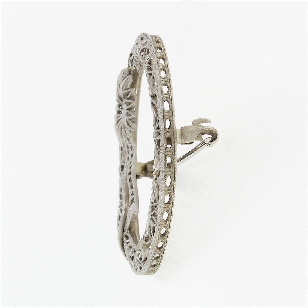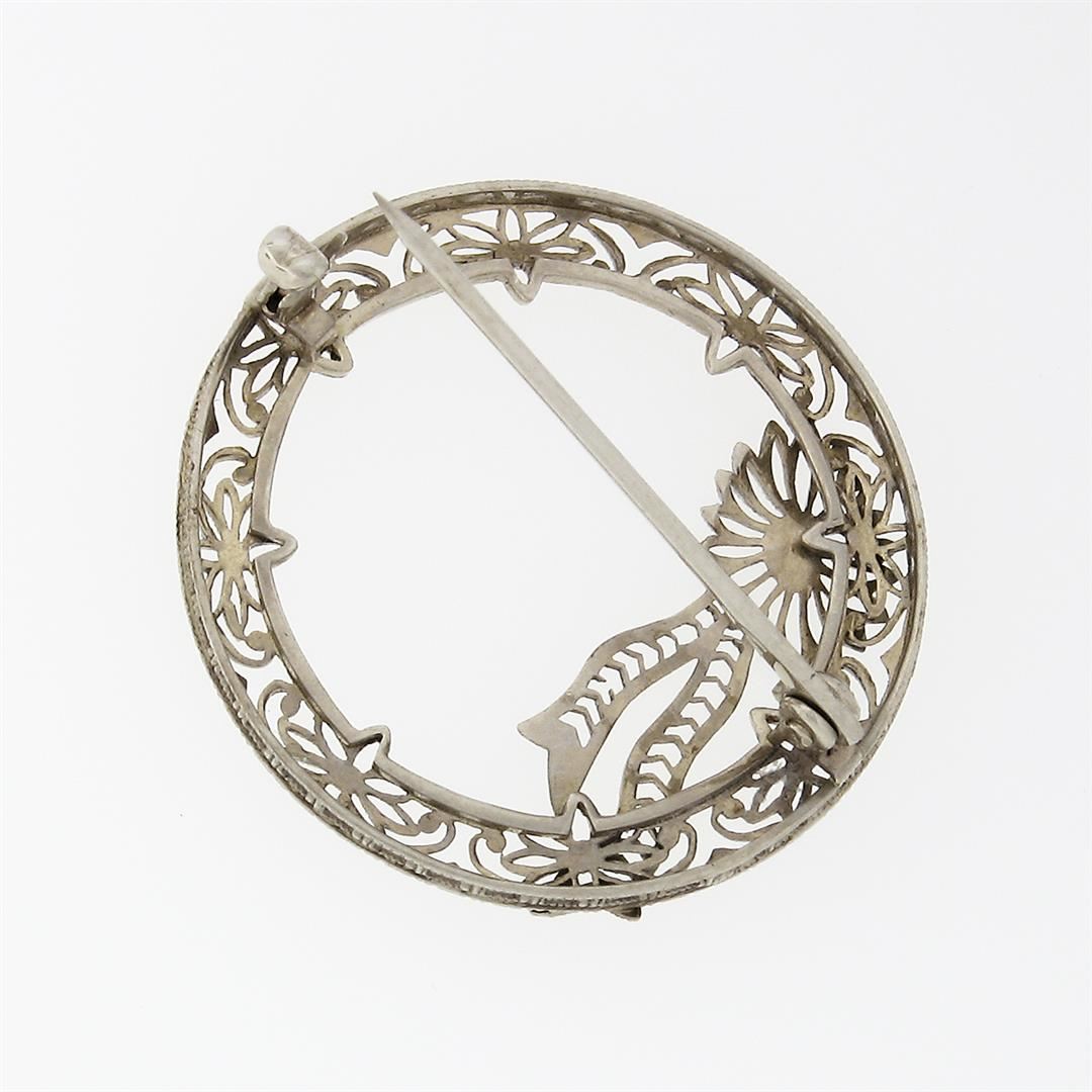 An antique art deco solid 14 white gold wreath brooch. Measures 29mm in diameter and weighs a total of 3.0 grams.