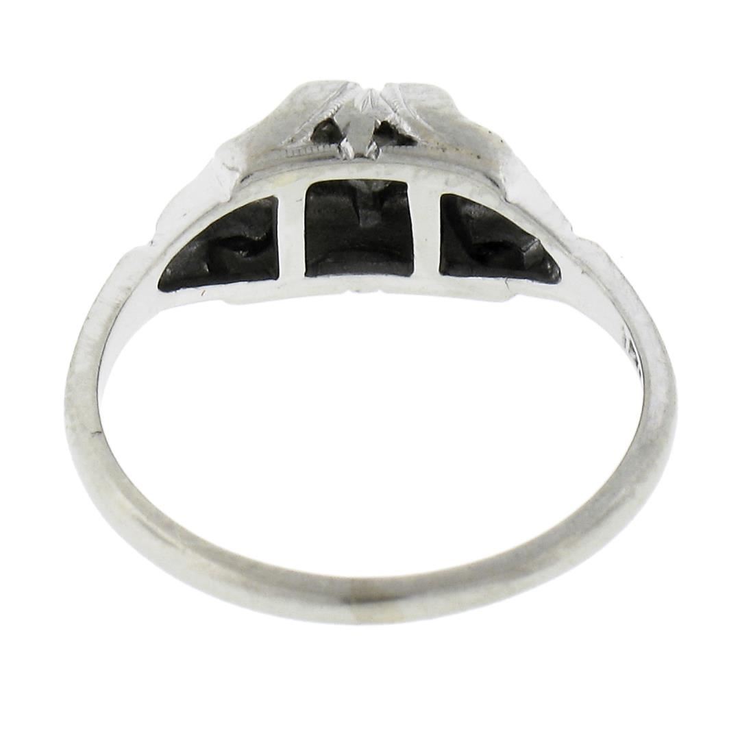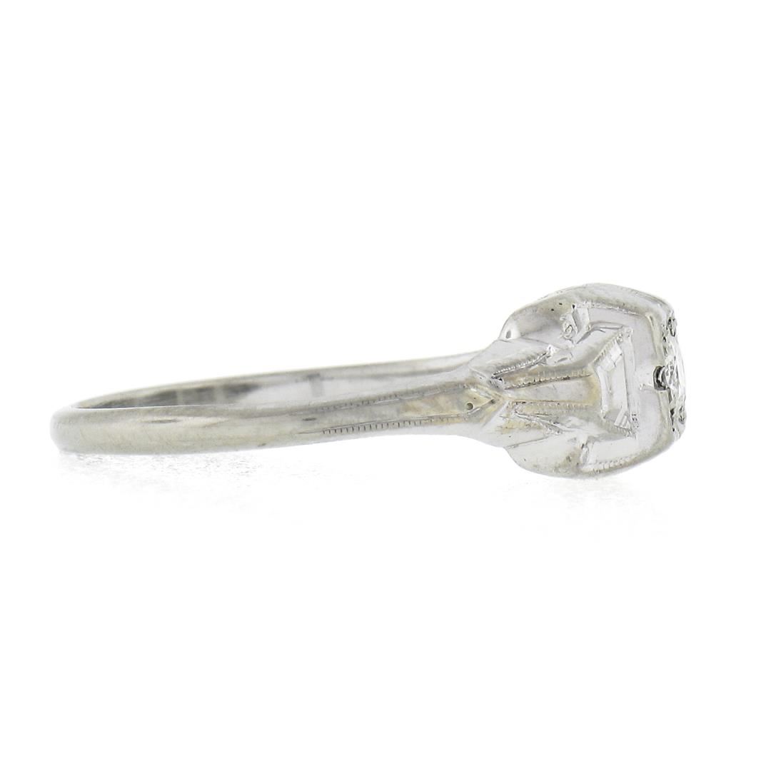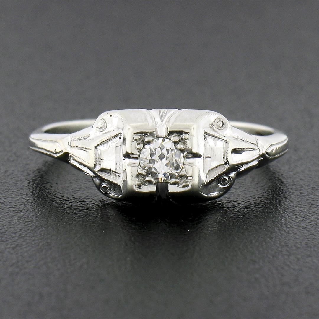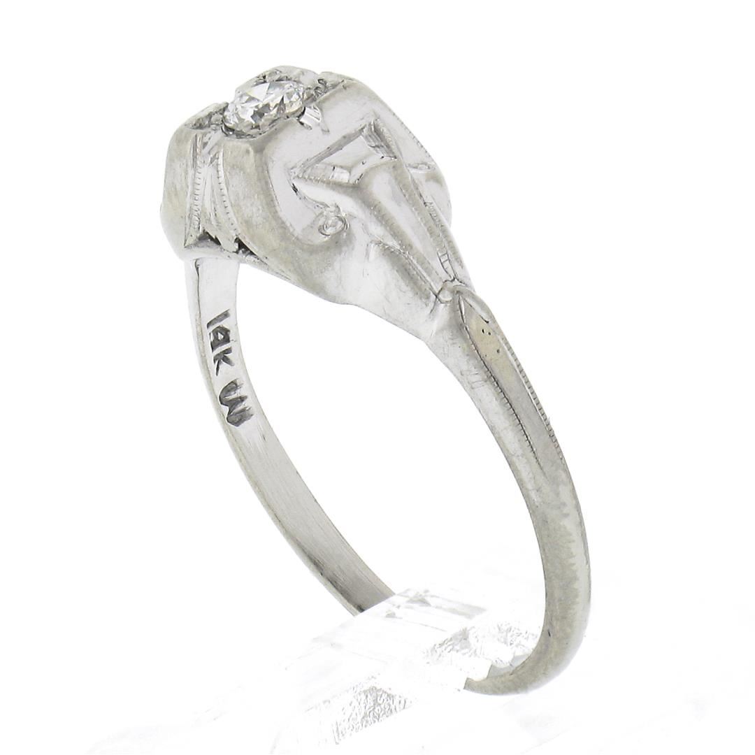 An antique solid 14k white gold solitaire ring, with 1 old european cut natural diamond (H - SI2 ; 0.10ct). The ring is size 5.5, weighs a total of 1.78 grams, and measures 6.5mm wide.