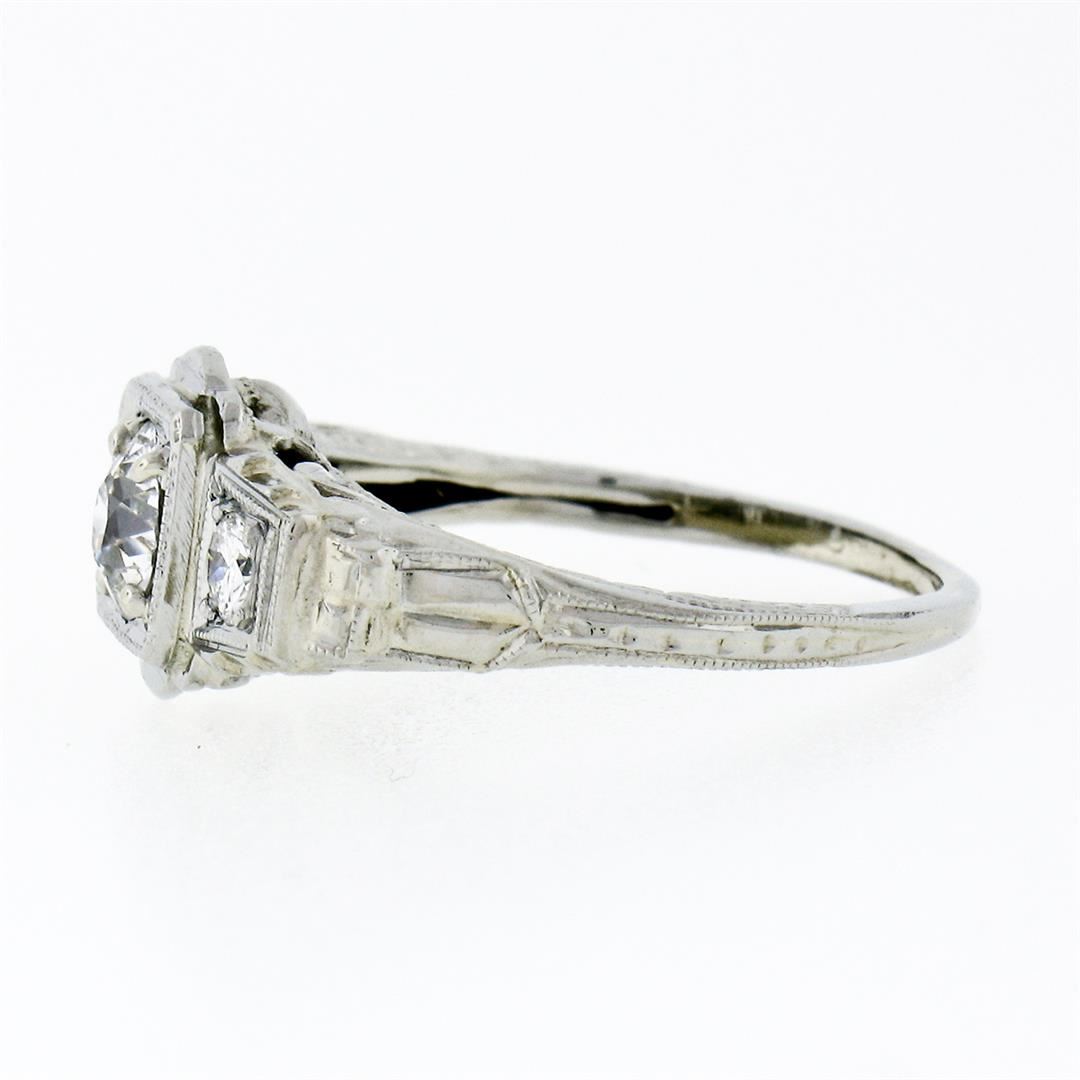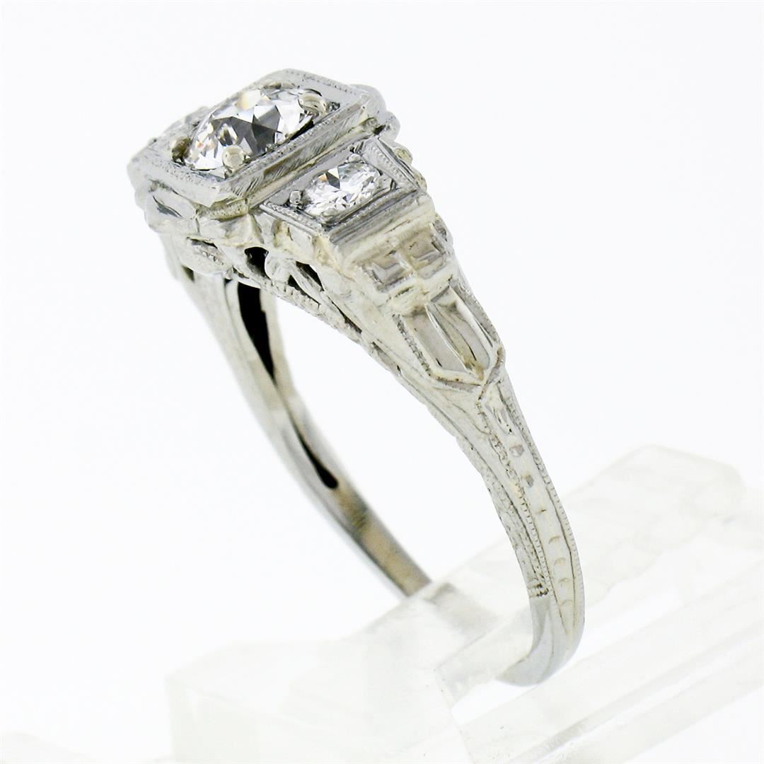 Antique Art Deco 18k Gold .70 ctw 3 Stone European Diamond Filigree Engraved Rin