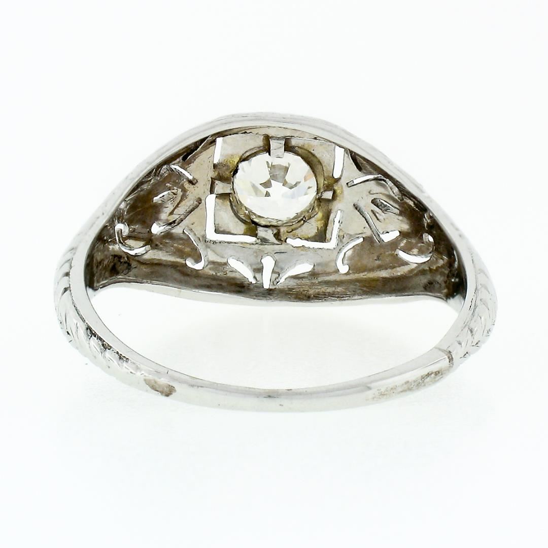 An antique solid 18k white gold ring, with 1 old european cut natural diamond (I - SI1 ; 0.52ct). The ring is size 7.0, weighs a total of 2.42 grams, and measures 9.8mm wide.