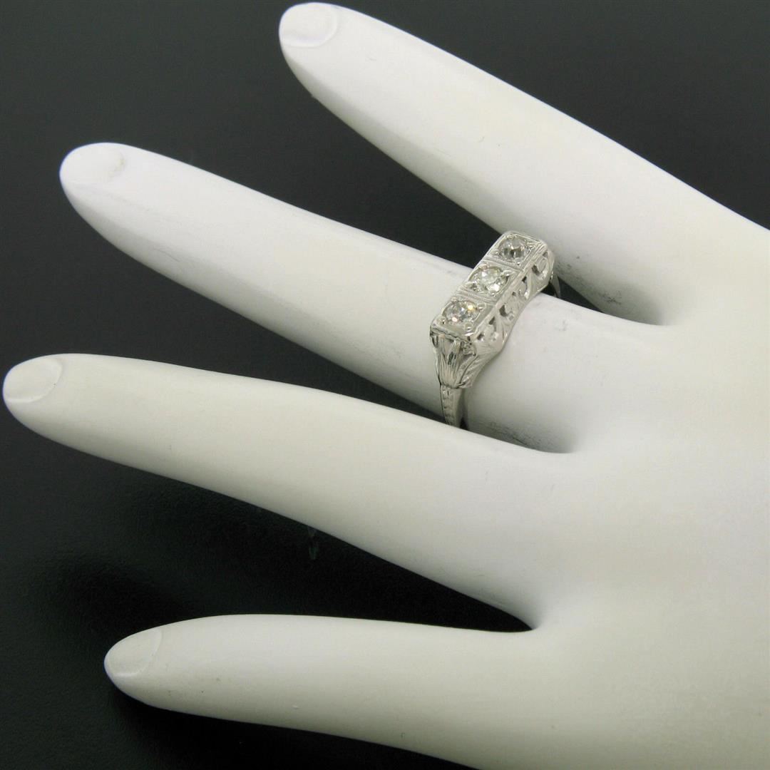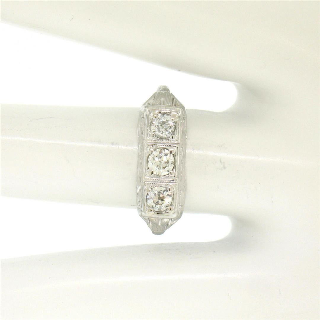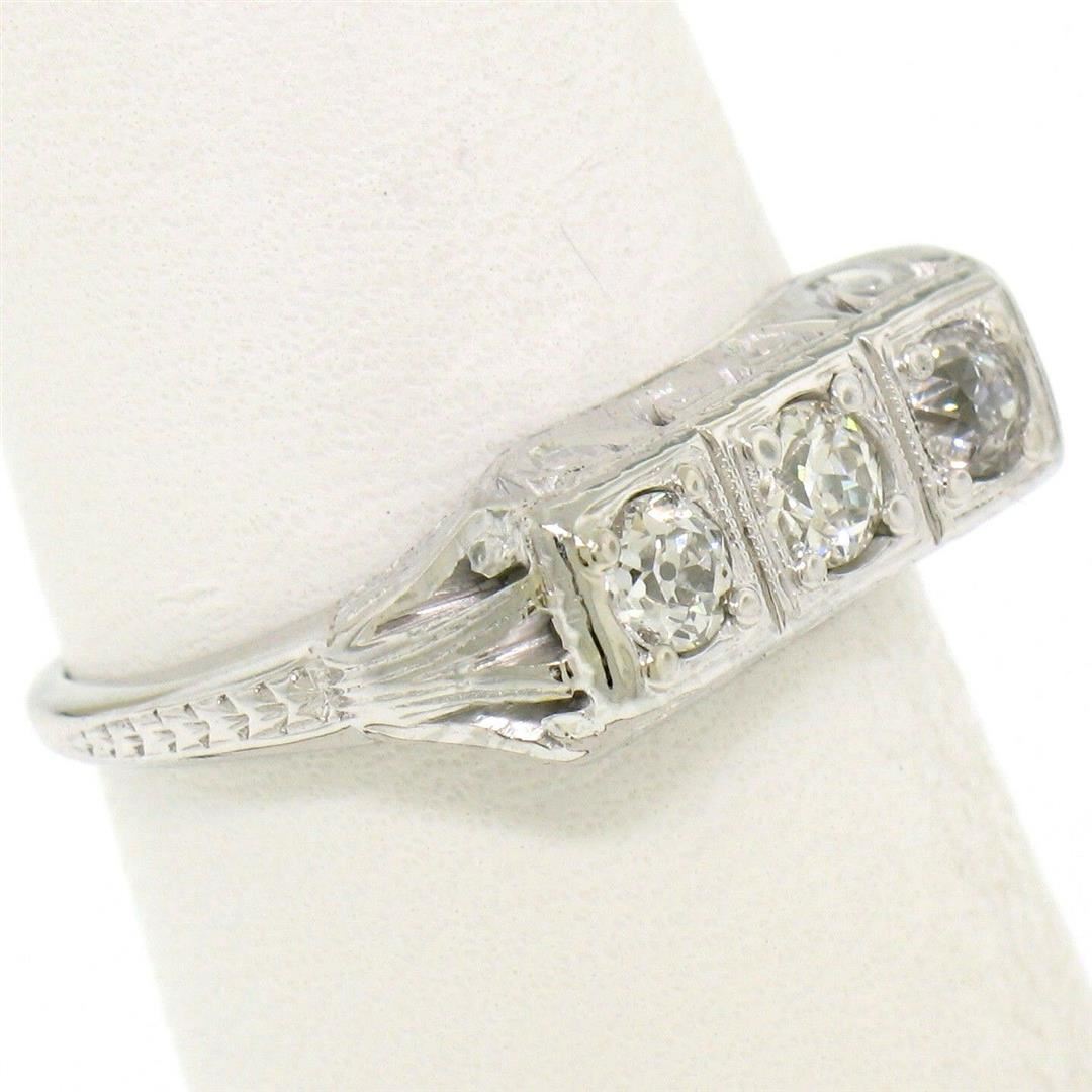 An excellent condition antique 18kt white gold ring with 0.55ctw of old European cut diamonds (H/I - VS2/SI1). The ring is size 6.5, weighs a total of 2.3 grams, and measures 6.54mm wide.