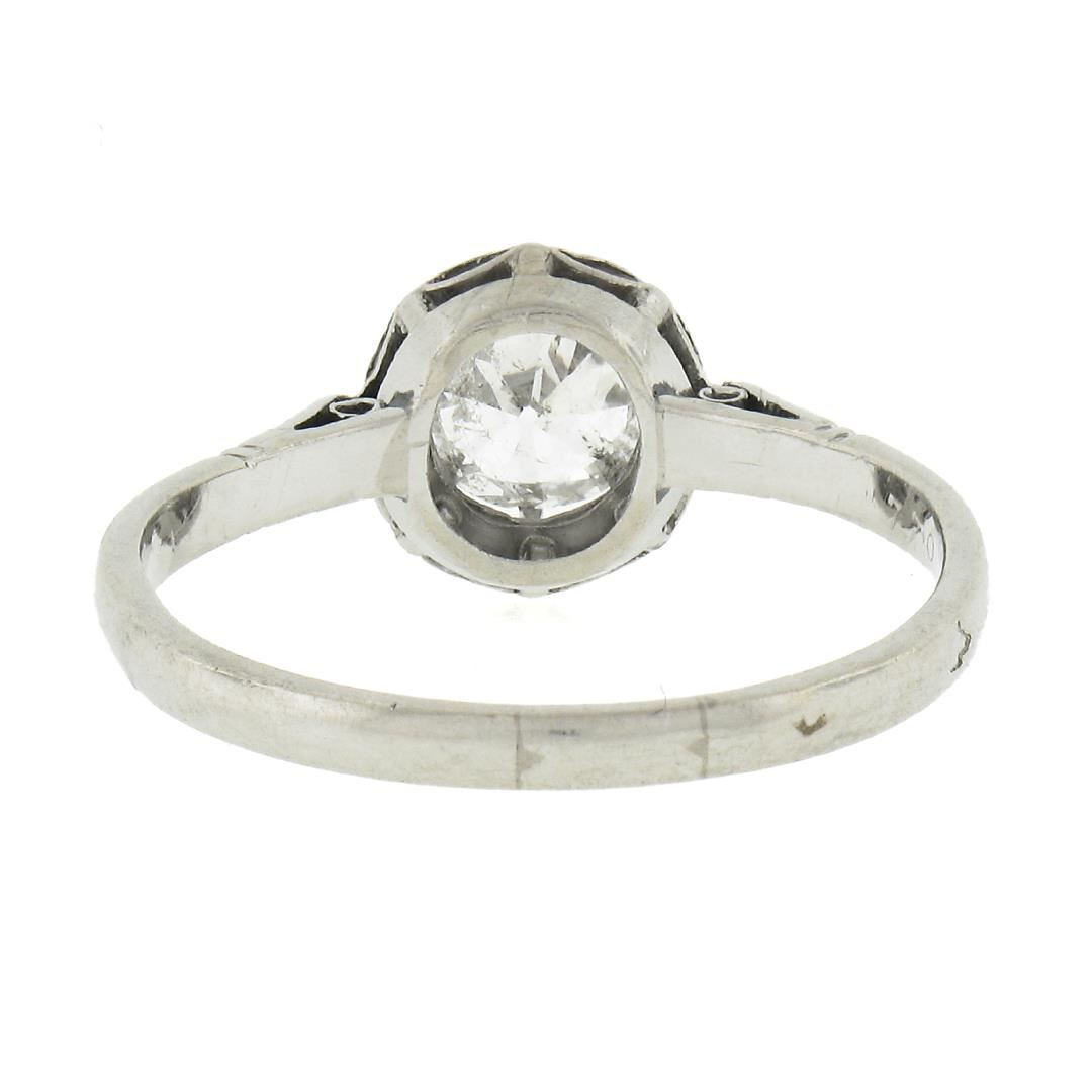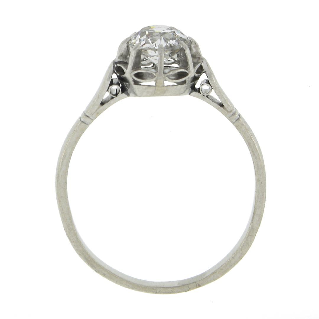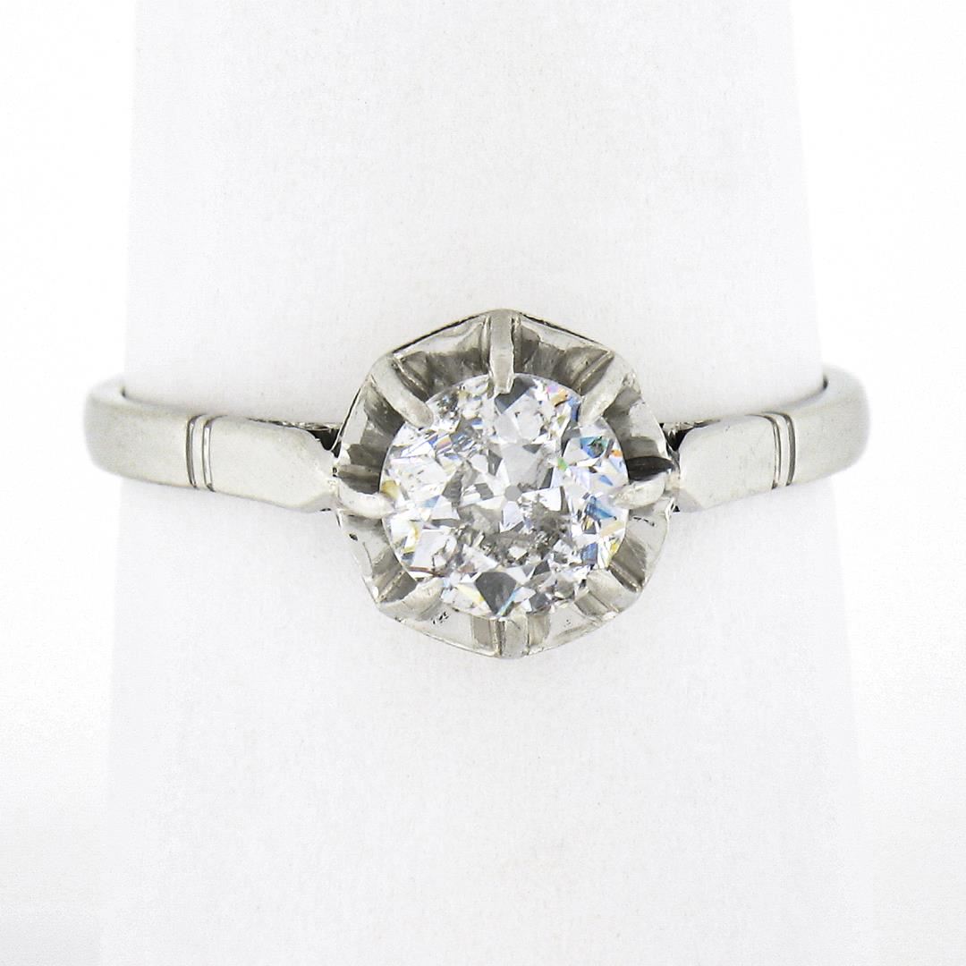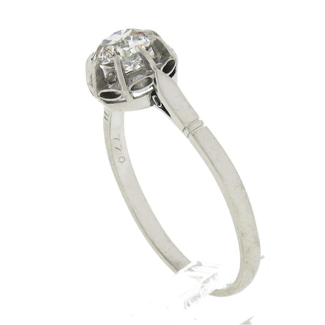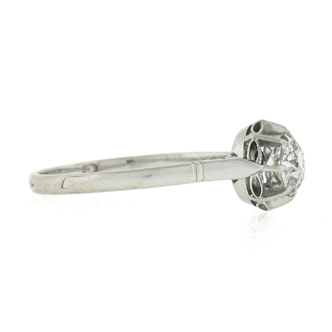 An antique solid platinum engagement ring, with 1 old european cut natural diamond (G - I1 ; 0.80ct). The ring is size 8.0, weighs a total of 3.22 grams, and measures 8.6mm wide.