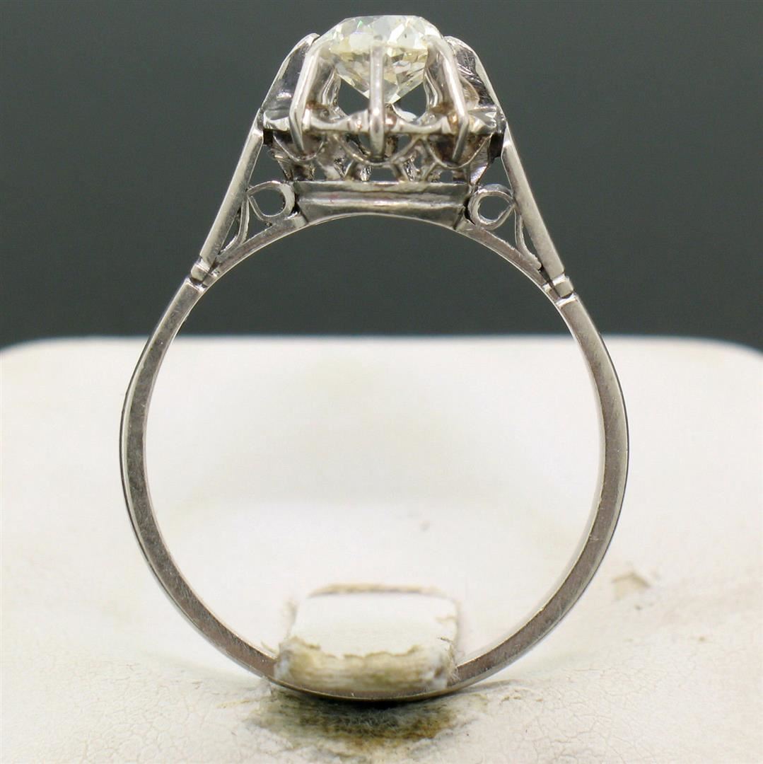 One Antique Art Deco .900 Platinum 0.78ct Old Mine Cut Diamond Filigree Engagement Ring. Item Details: Material: Solid .900 Platinum, Weight: 3.9 Grams, Stone(s): (1) Natural Genuine Diamond - Cushion Shaped Old Mine Cut - 8-Prong Set - I/J Color - VS2 Clarity, Total Carat Weight: 0.78 (approx.), Ring Size: 7.0 , Ring Width: 9.15mm, Ring Height: 7.50mm rise off the finger, Condition: Antique, early art deco period engagement ring. Solid platinum. Excellent condition!