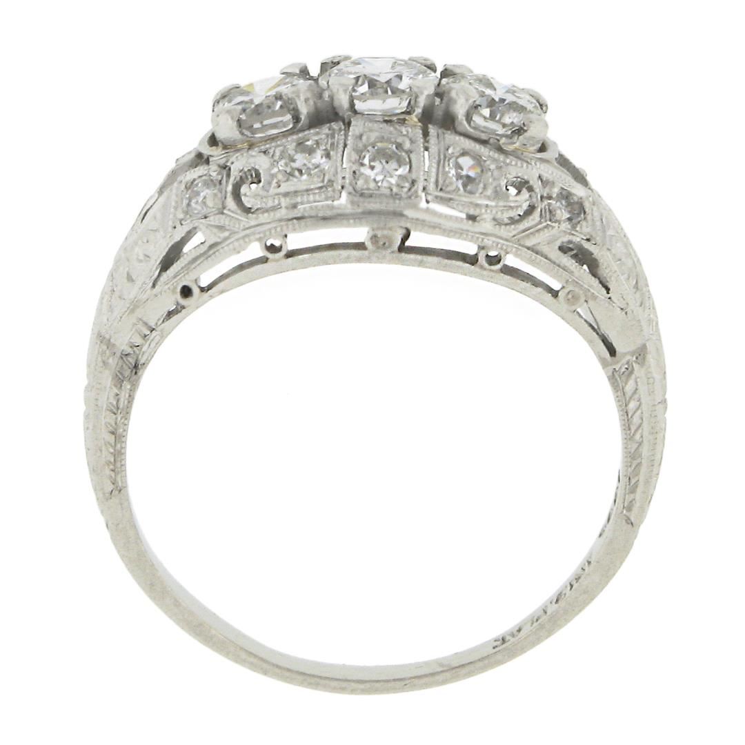 An antique solid platinum ring, with 13 old cut natural diamonds (G-H - VS2-SI2 ; 0.81ctw). The ring is size 6.5, weighs a total of 4.29 grams, and measures 10.5mm wide.