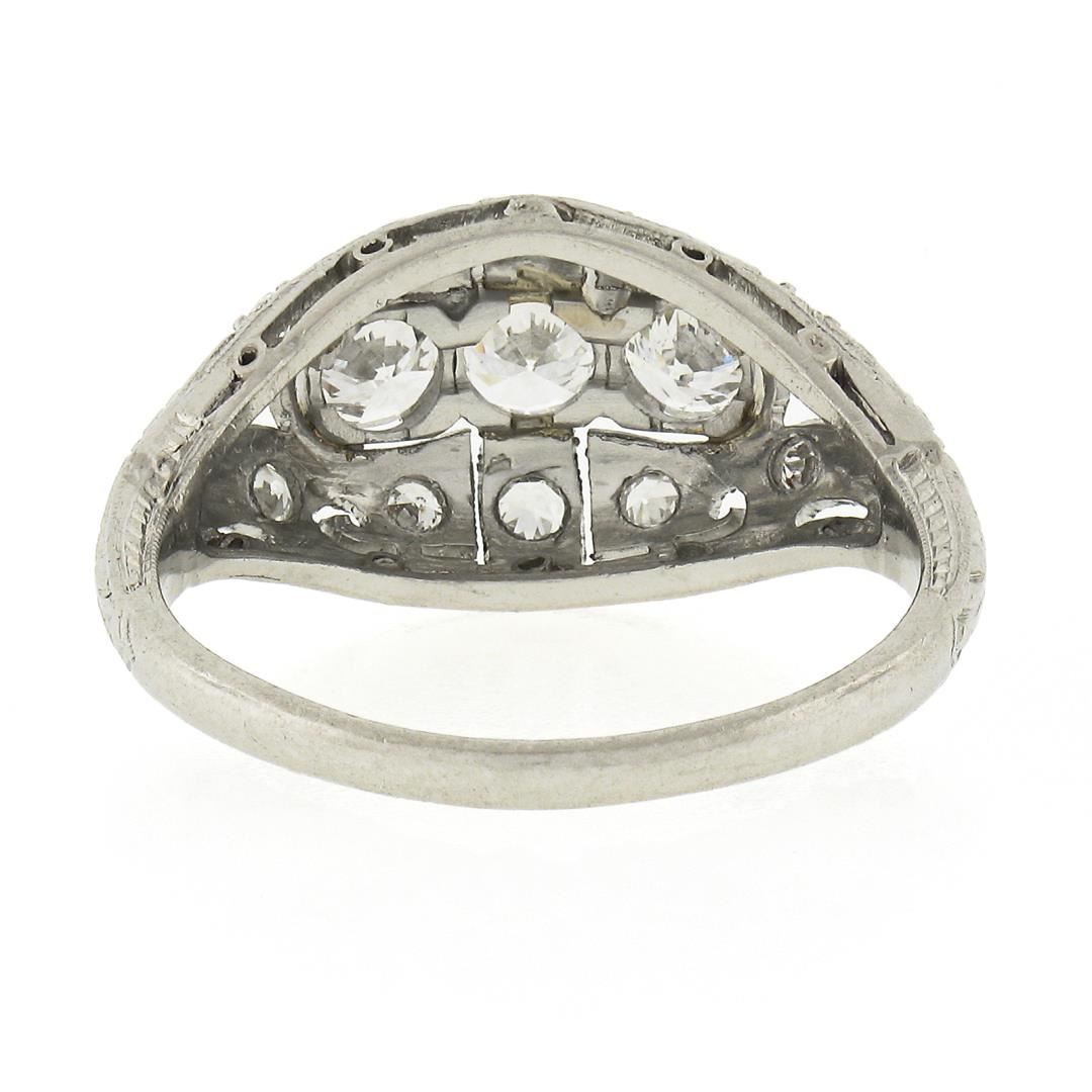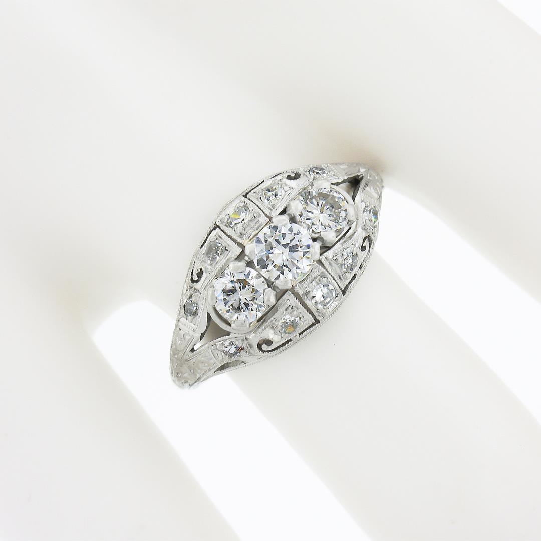 An antique solid platinum ring, with 13 old cut natural diamonds (G-H - VS2-SI2 ; 0.81ctw). The ring is size 6.5, weighs a total of 4.29 grams, and measures 10.5mm wide.