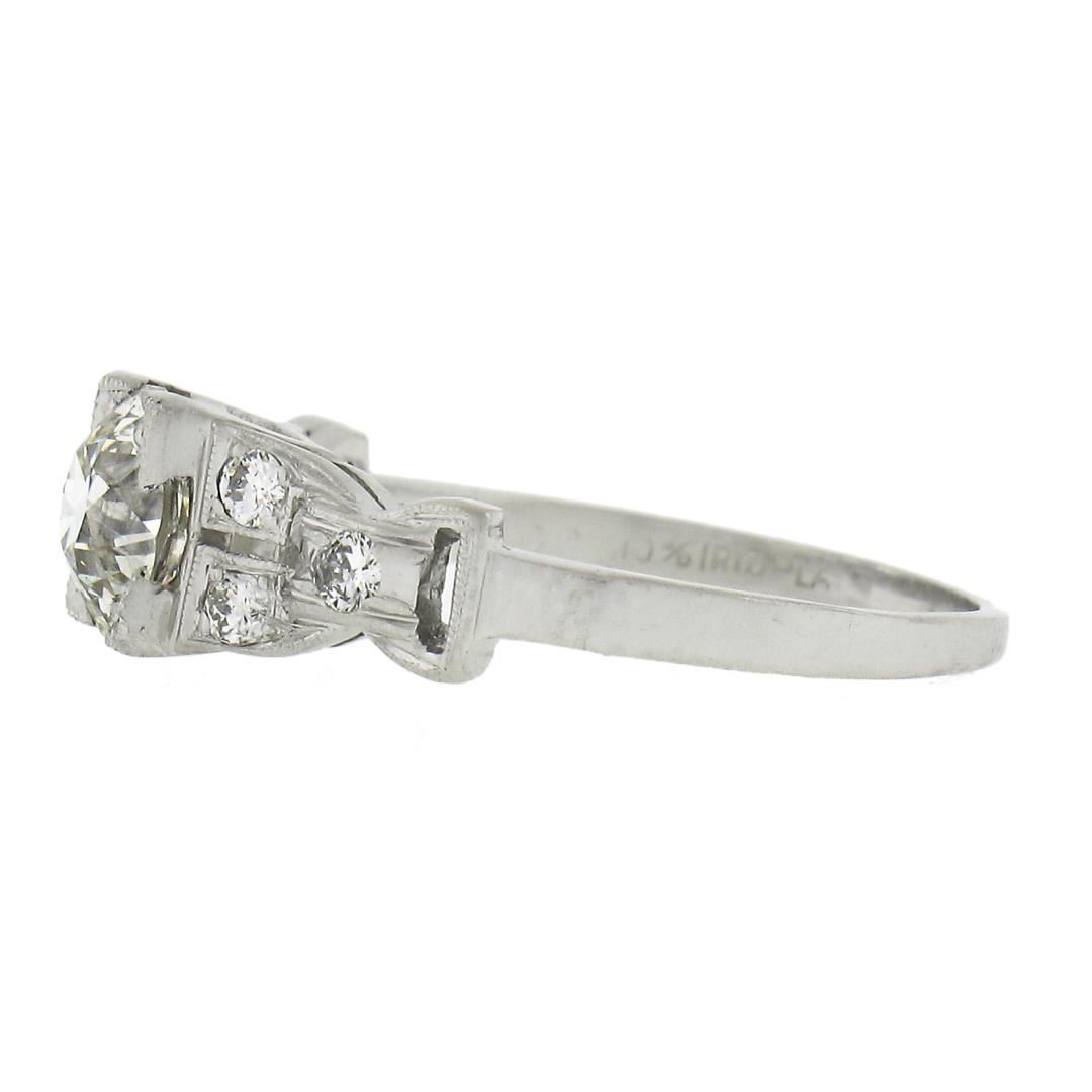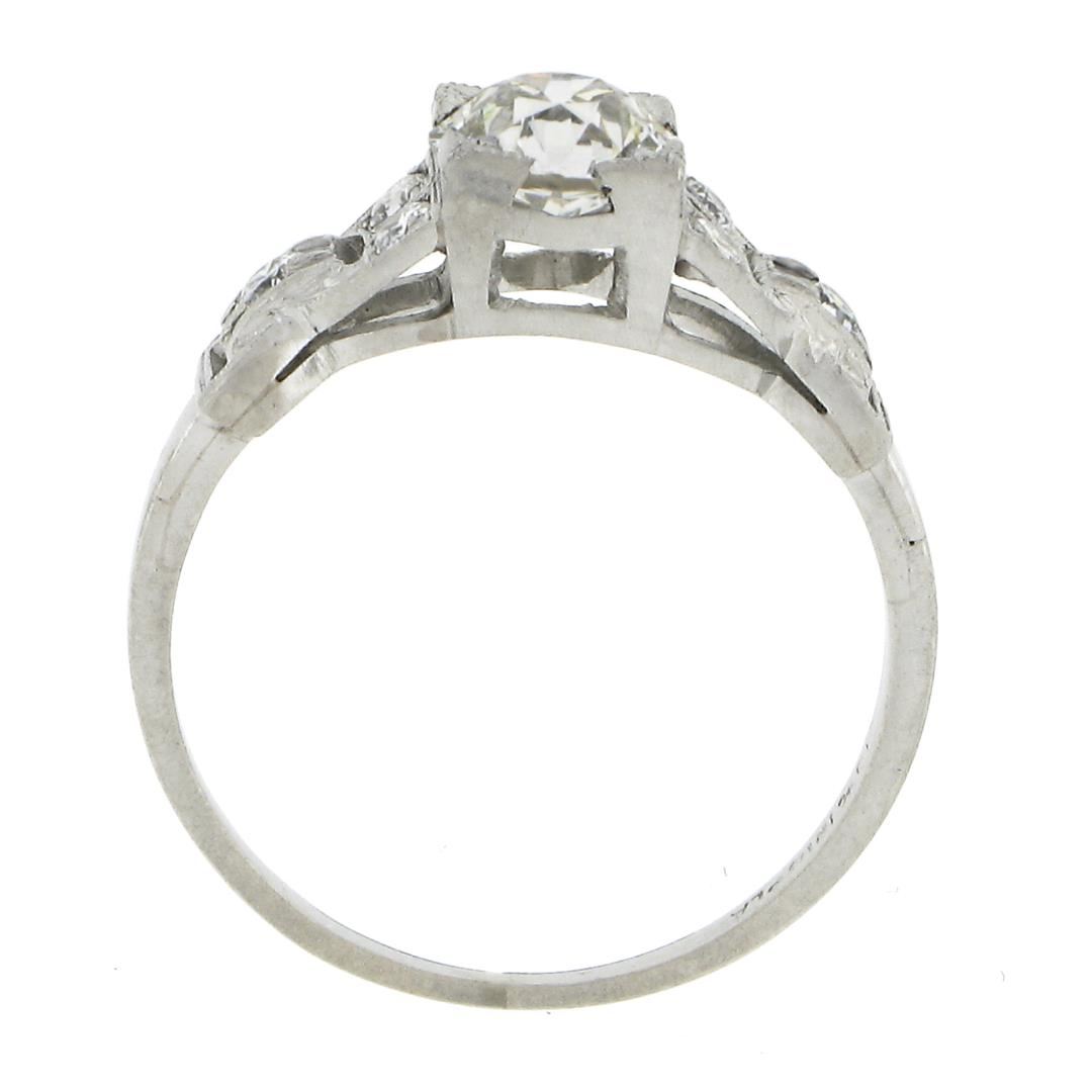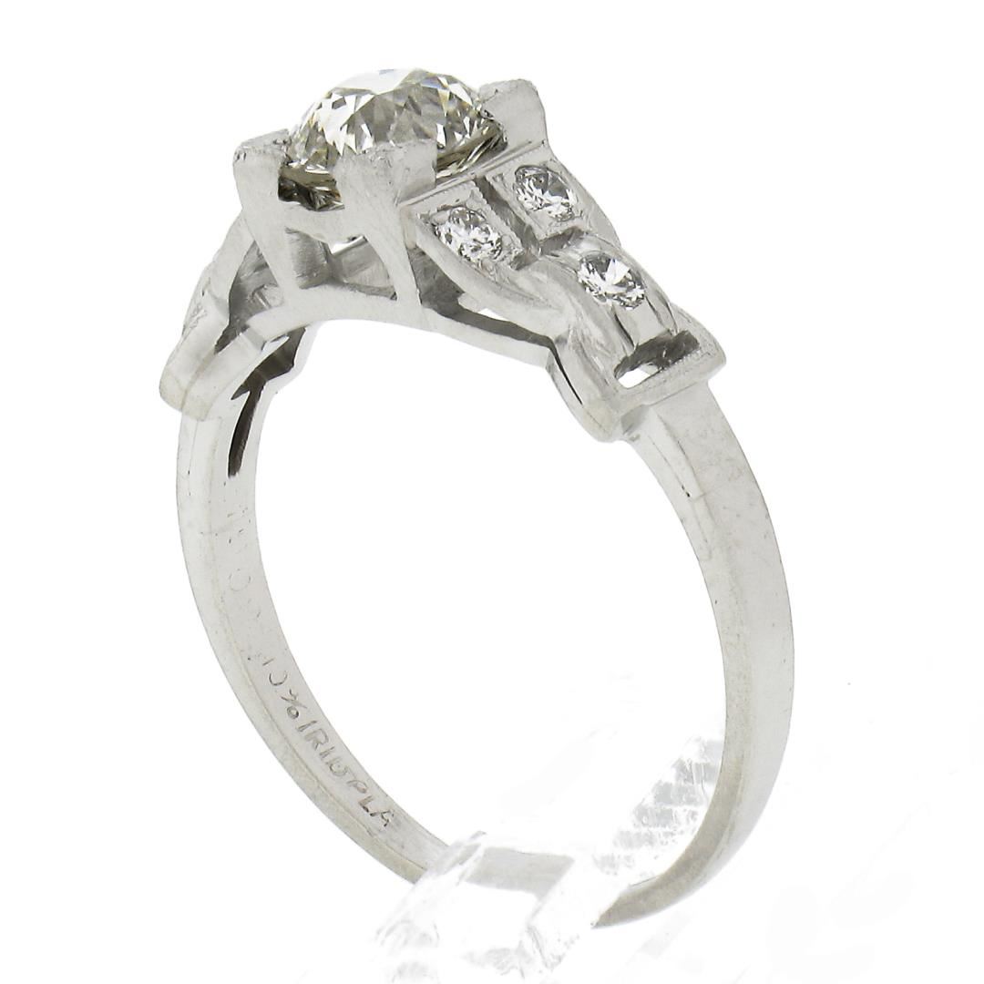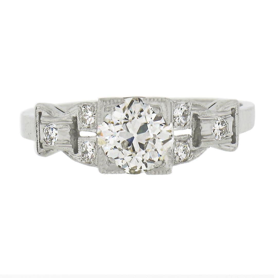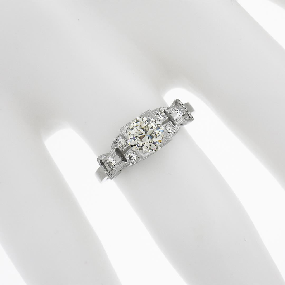 An antique solid paltinum ring, with 1 old european cut natural diamond (K - VS1 ; 0.80ct), and 6 old european cut natural diamonds (G-I - VS2-SI2 ; 0.12ctw). The ring is size 5.0, weighs a total of 3.17 grams, and measures 5.8mm wide.