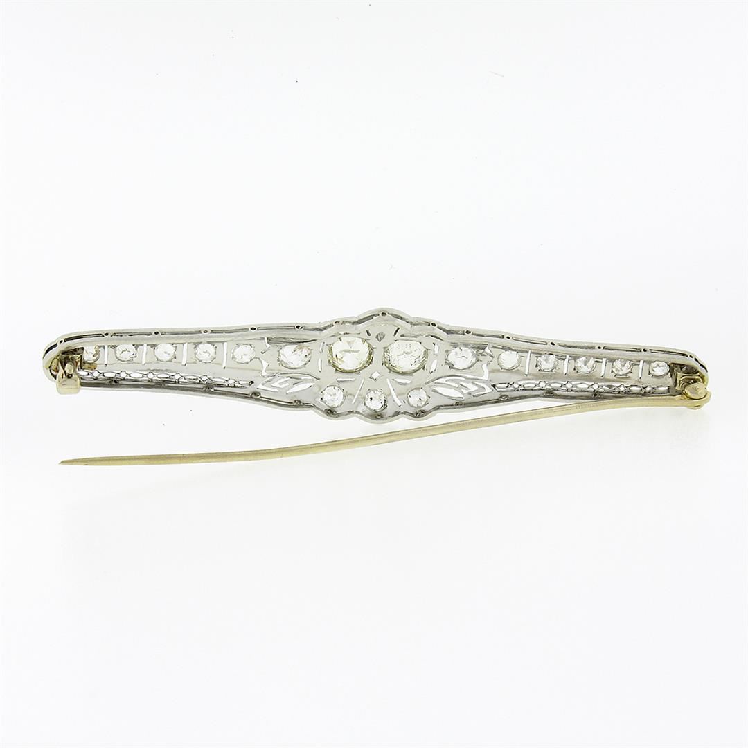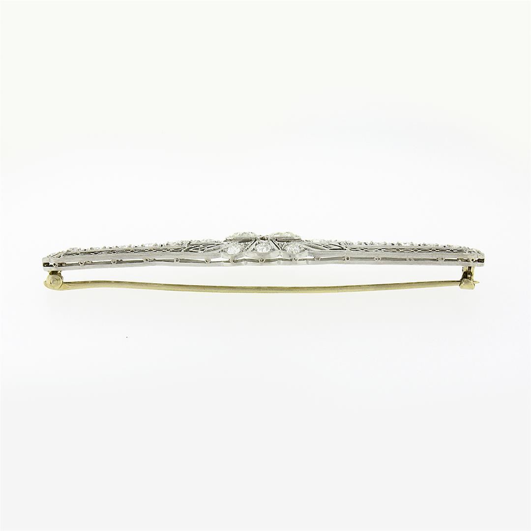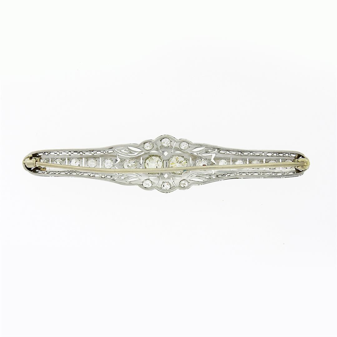 An antique solid platinum pin brooch, with 22 old eurooean cut natural diamonds (H-L - VS2/SI2 ; 4.04ctw)Measures 15.60x76.25mm and weighs a total of 10.51 grams.