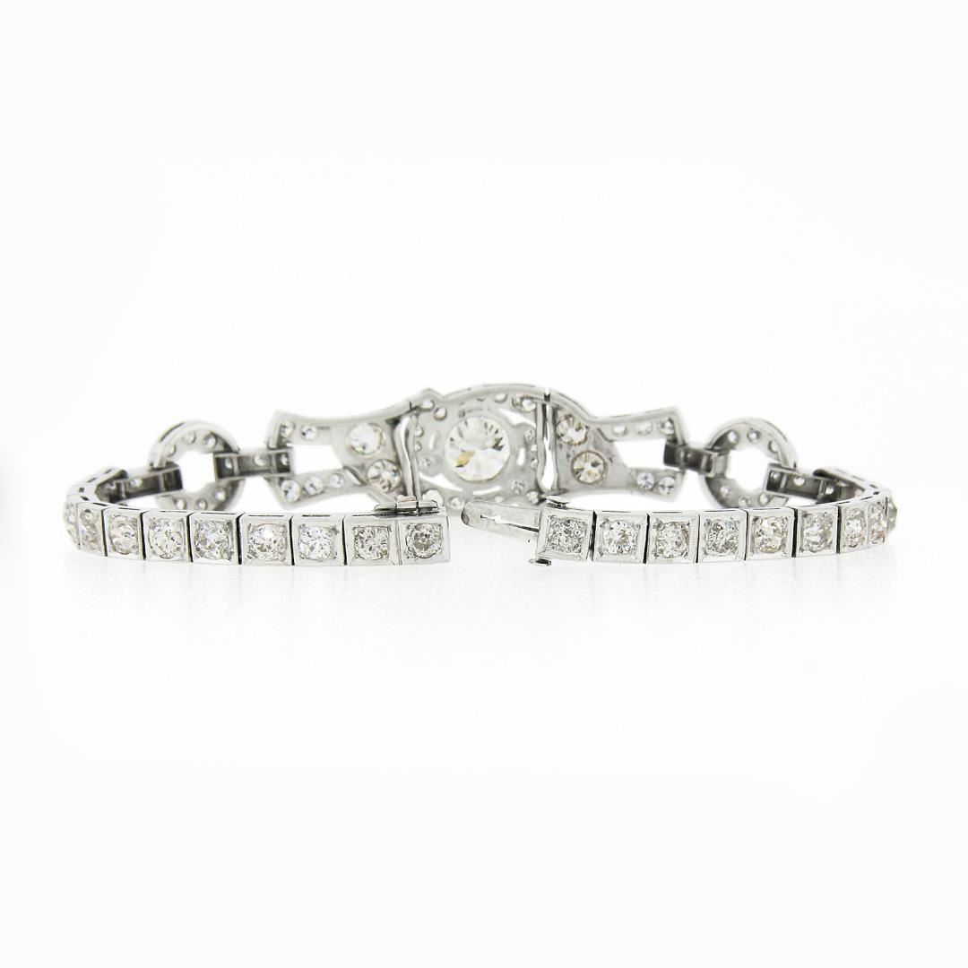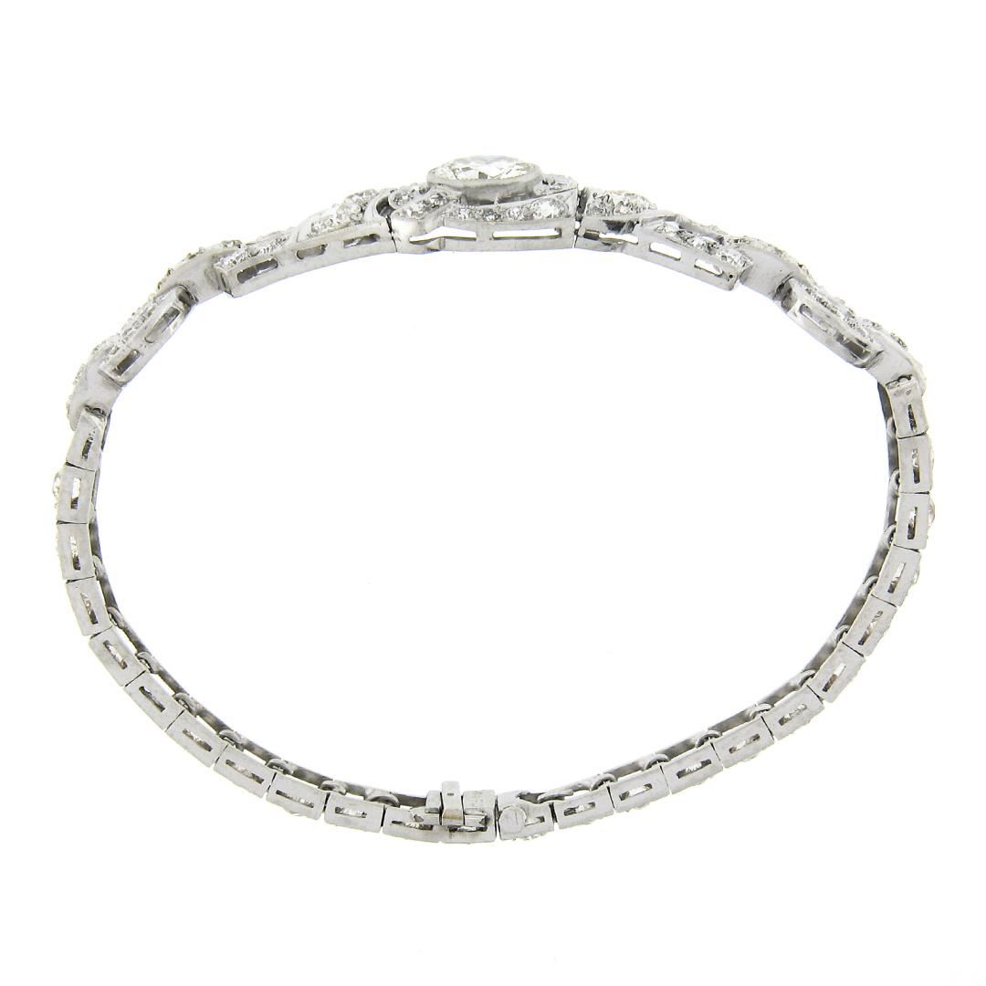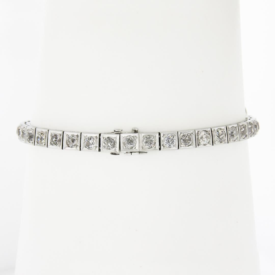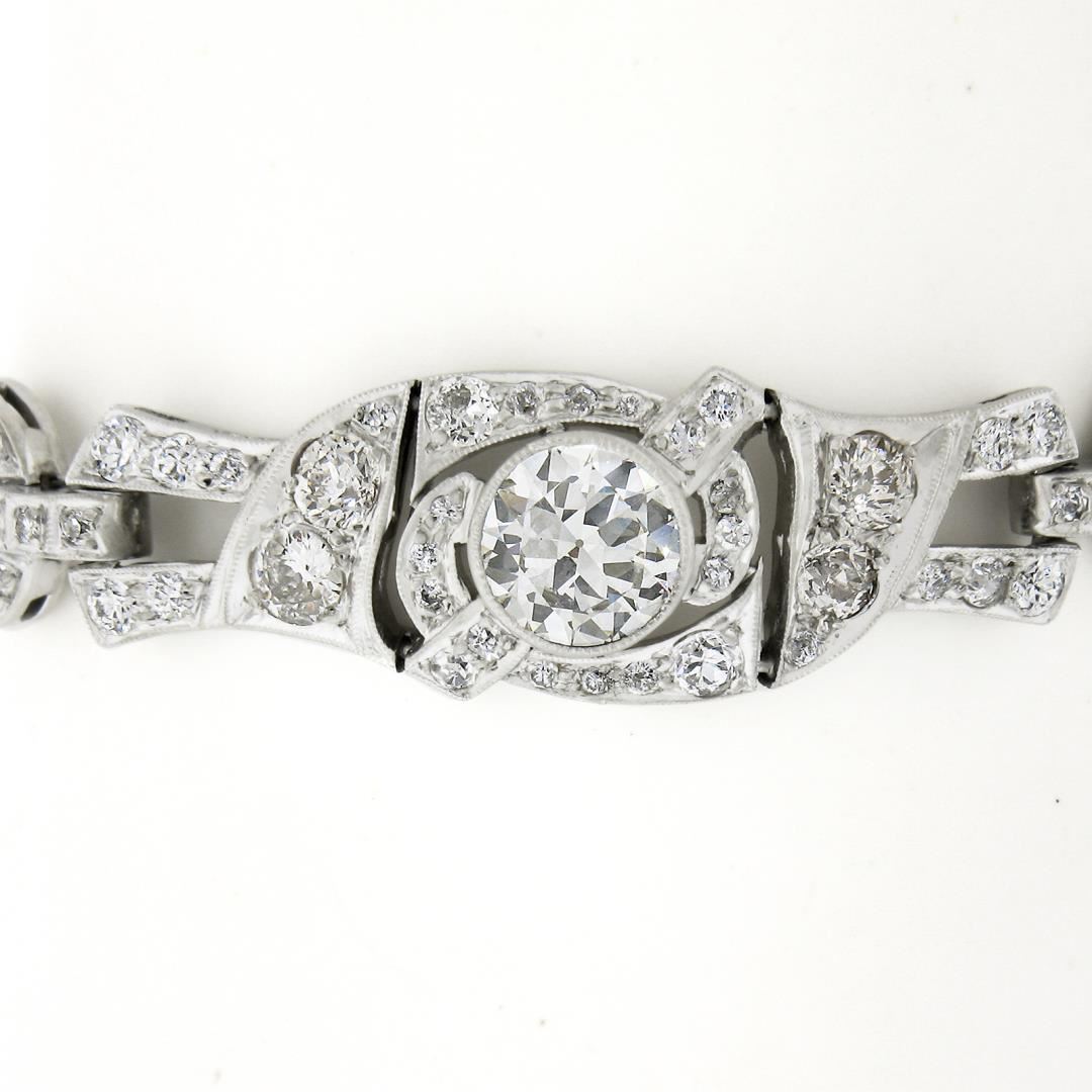 An antique solid paltinum belly bracelet, with 1 GIA graded old european cut natural diamond (L - SI2 ; 1.38ct ), and 78 old european & single cut natural diamonds (H-L - VS2-I1 ; 4.16ctw). It weighs a total of 17.48 grams, measures 12.65mm wide, and measures 6.25 inches in length. Comes with all original relevant certifications.