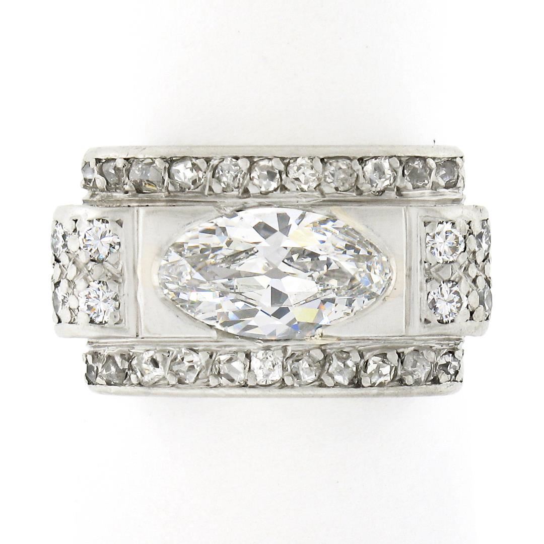 An antique solid 18k yellow gold & platinum platter ring, with 1 GIA graded oval cut natural diamond (G - SI1 ; 1.10ct ), and 30 old rose & old European cut natural diamonds (G/H - SI1/SI2 ; 0.30ctw). The ring is size 6.0, weighs a total of 7.46 grams, and measures 10.7mm wide. Comes with all original relevant certifications.