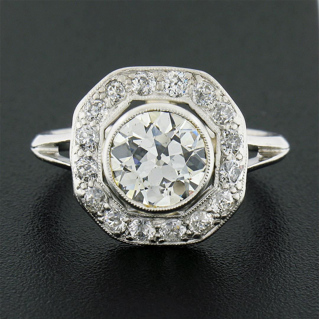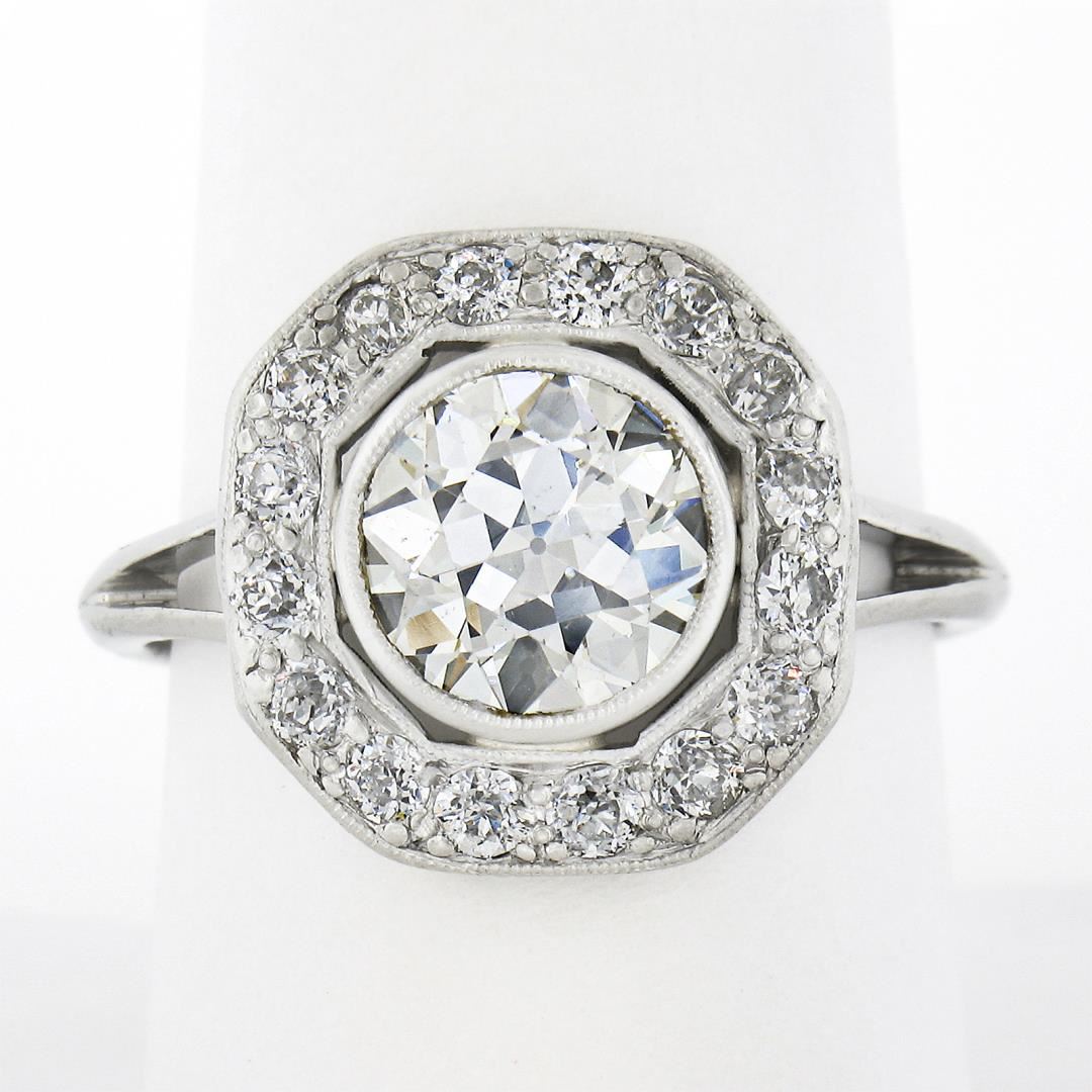 An antique solid platinum platter ring, with 1 GIA graded old European cut natural diamond (K - VS1 ; 2.19ct), and 16 old European & single cut natural diamonds (H/I - VS1/VS2 ; 0.80ctw). The ring is size 9.5, weighs a total of 6.40 grams, and measures 15.3mm wide. Comes with all original relevant certifications.