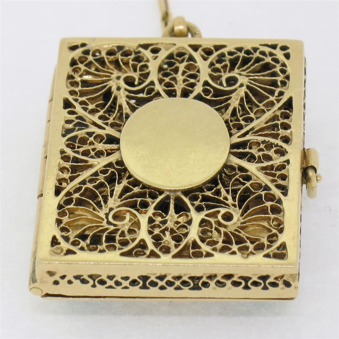Antique French 14k Gold Turquoise Enamel Portrait Hinged Locket Pendant Necklace