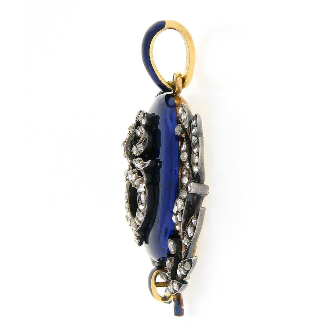 An antique solid 14k yellow gold & silver pendant, with 133 old rose cut natural diamonds (G/J - SI1/SI2 ; 2ctw). The pendant weighs a total of 18.94 grams, measures 52.10x38mm including the bail, and the inside of the bail measures 7.7.x5.9mm.