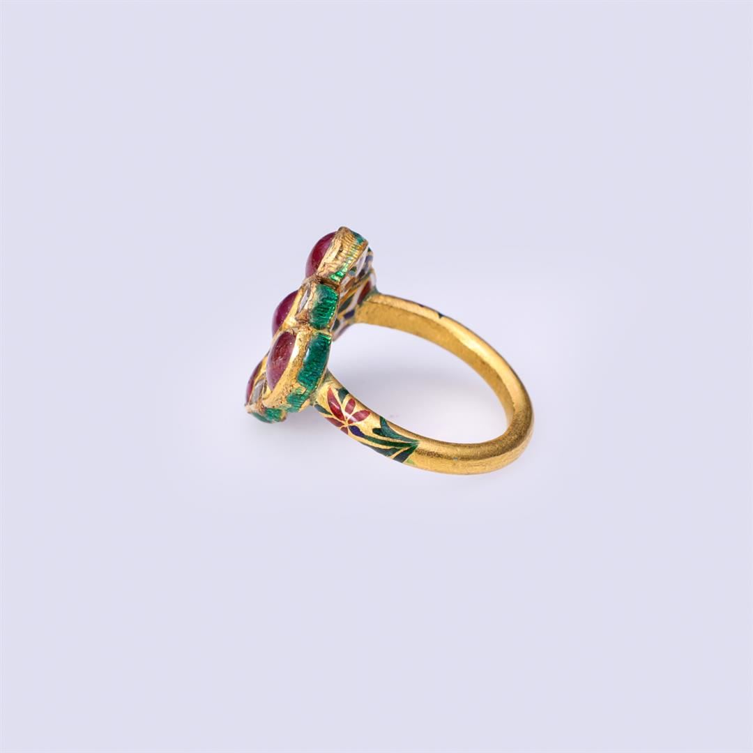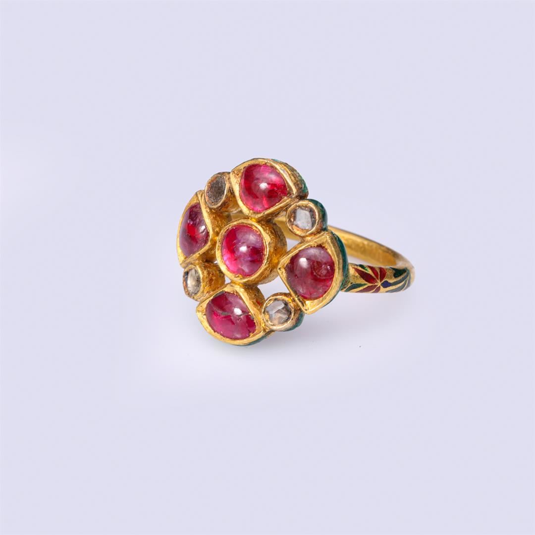 Antique Indian High Carat Gold Ruby & Diamond Ring