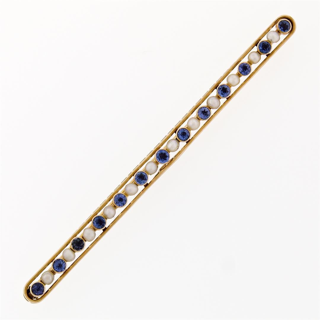 Antique Krementz 14k Gold 1.30ctw Old Sapphire Natural Pearl Long Bar Pin Brooch. Please see photos and description for all available information. An antique krementz solid 14k yellow gold bar pin brooch. featuring 13 old round cut natural sapphires (1.30ctw), alternated with 12 round cut natural pearls (2.6-2.8). Measures 4.9x79mm and weighs a total of 6.19 grams.