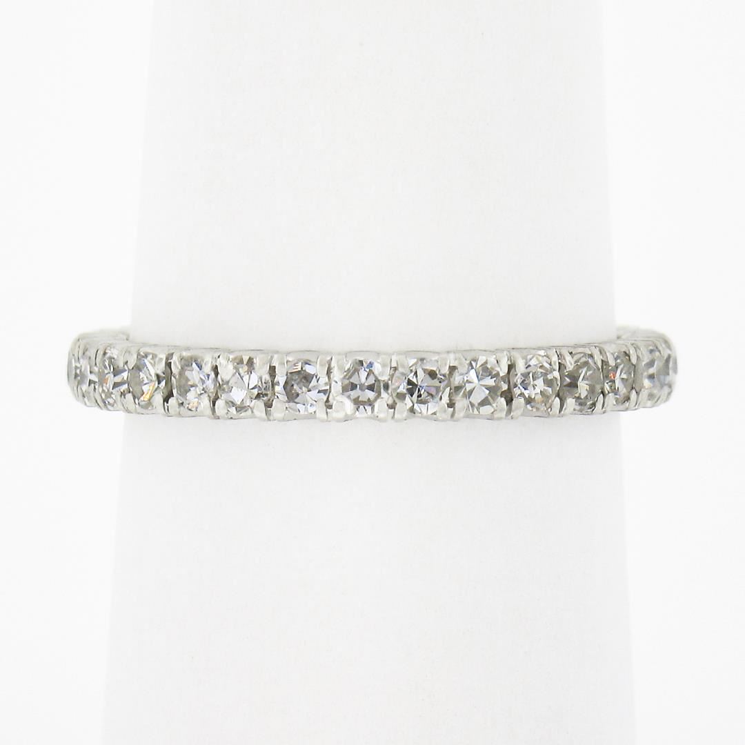 An antique solid platinum band ring, with 32 old single cut natural diamonds (H/I - VS2/SI2 ; 0.80ctw). The ring is size 6.5, weighs a total of 2.55 grams, and measures 2.3mm wide.