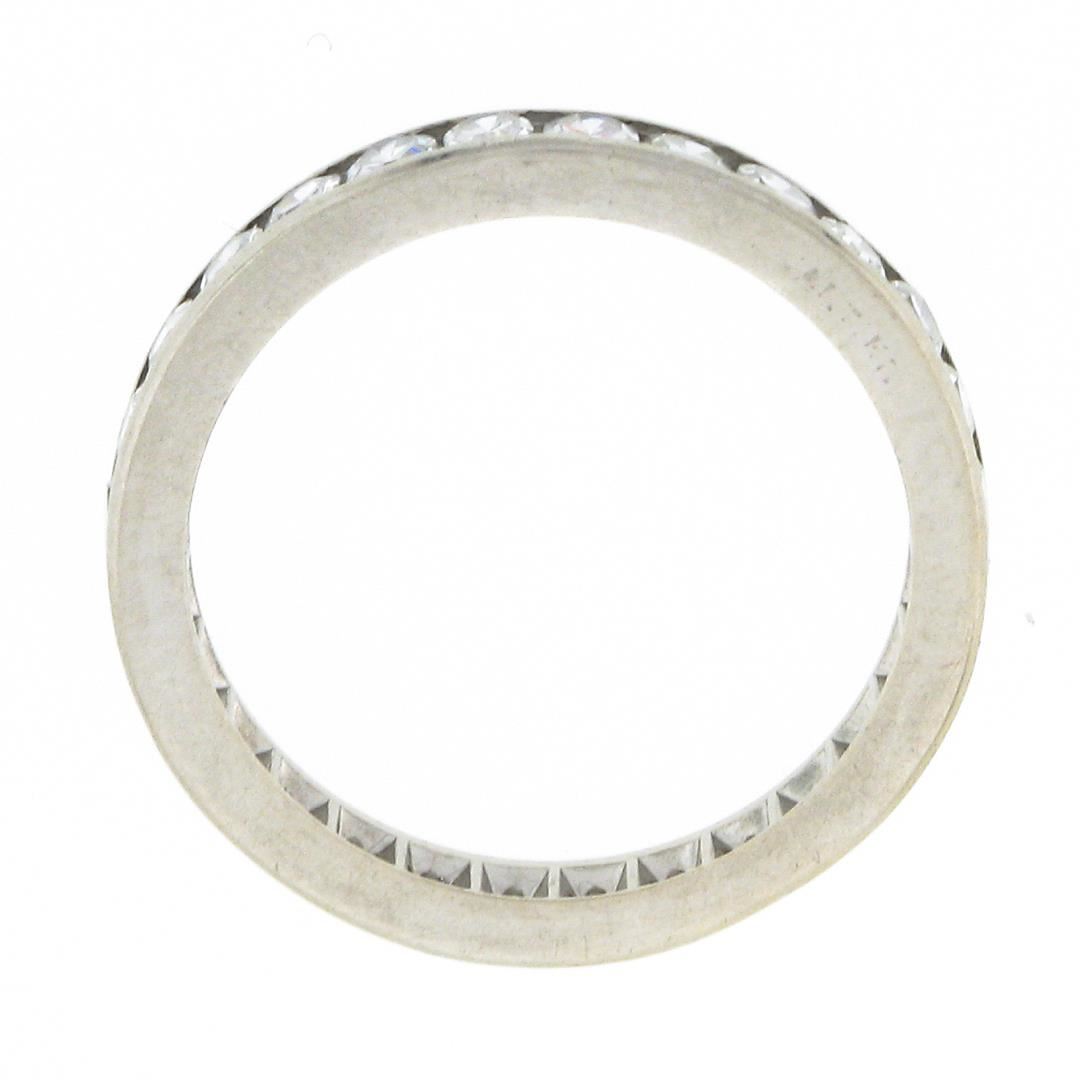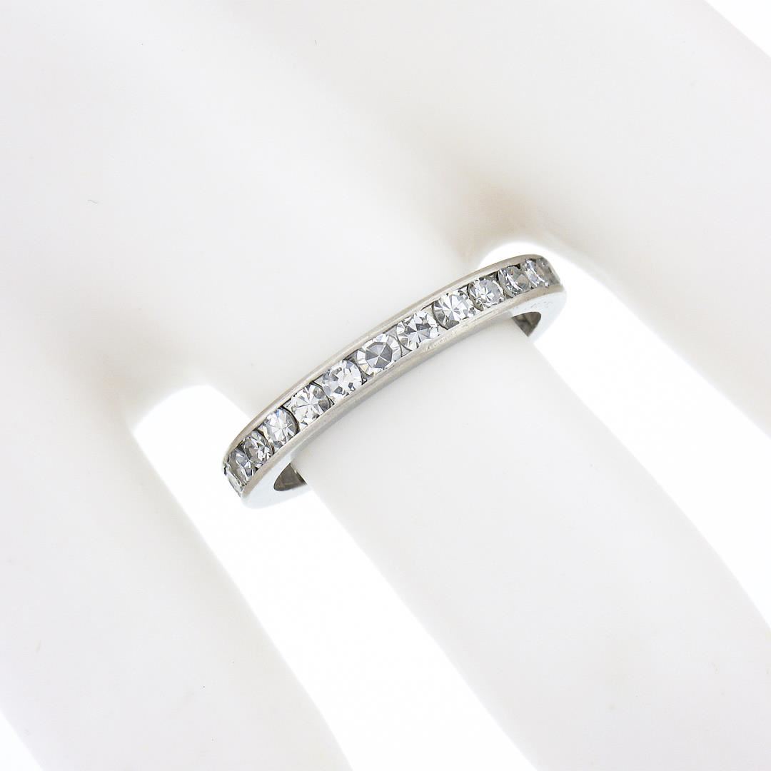 An antique solid platinum eternity band ring, with 28 old single cut natural diamonds (G/H - VS1/VS2 ; 1ctw). The ring is size 6.0, weighs a total of 3.27 grams, and measures 2.6mm wide.