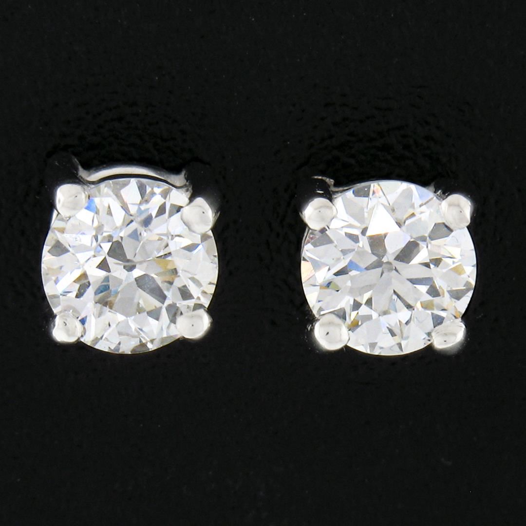 An antique solid platinum pair of stud earrings. with 2 old European cut natural diamonds (G/H - VS2/SI1 ; 0.83ctw). The earrings measure approximately 5.95mm in diameter and weigh a total of 1.85 grams.