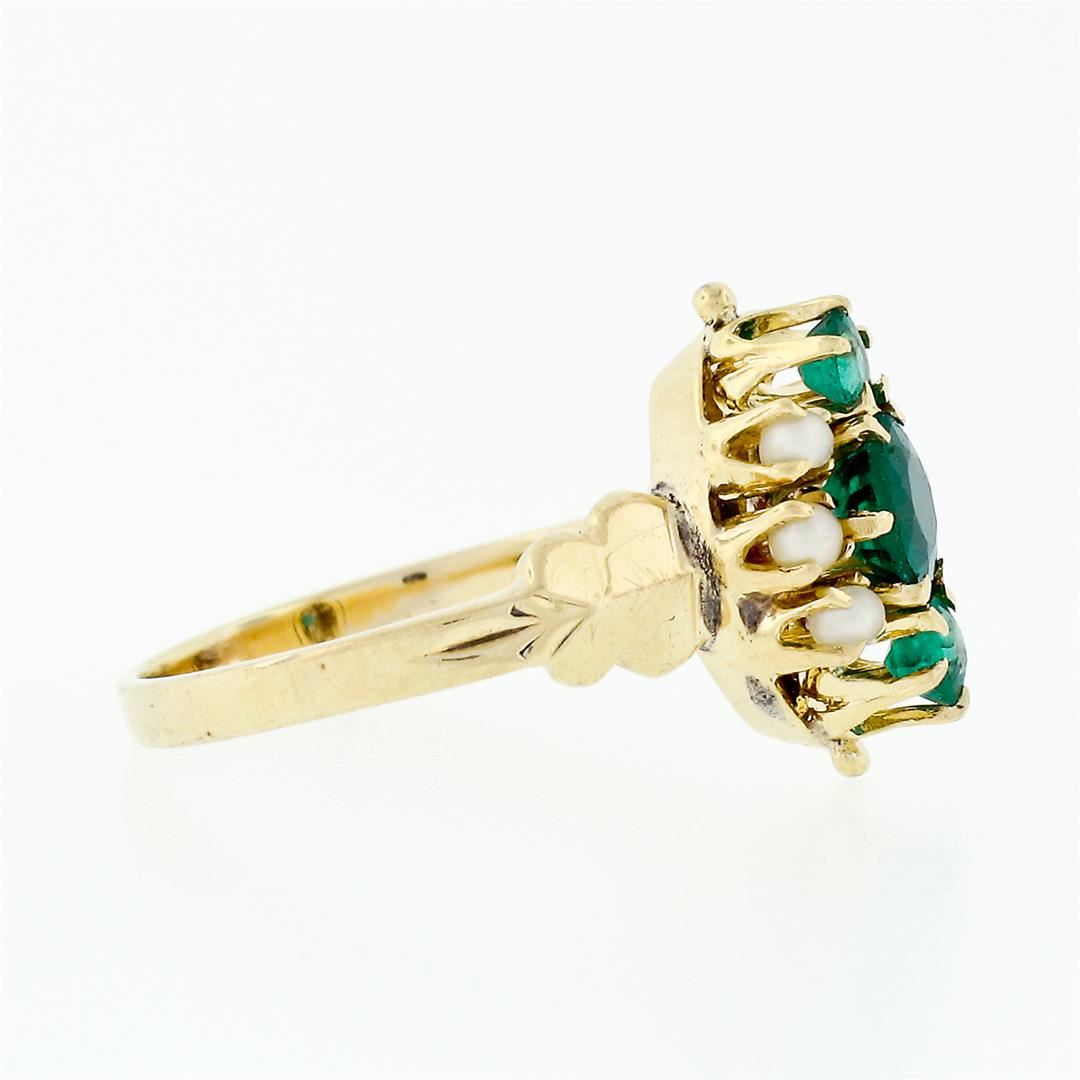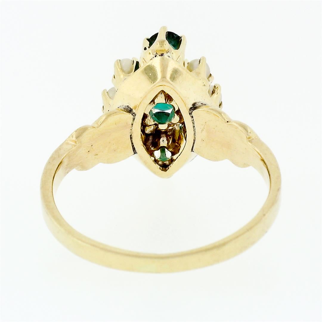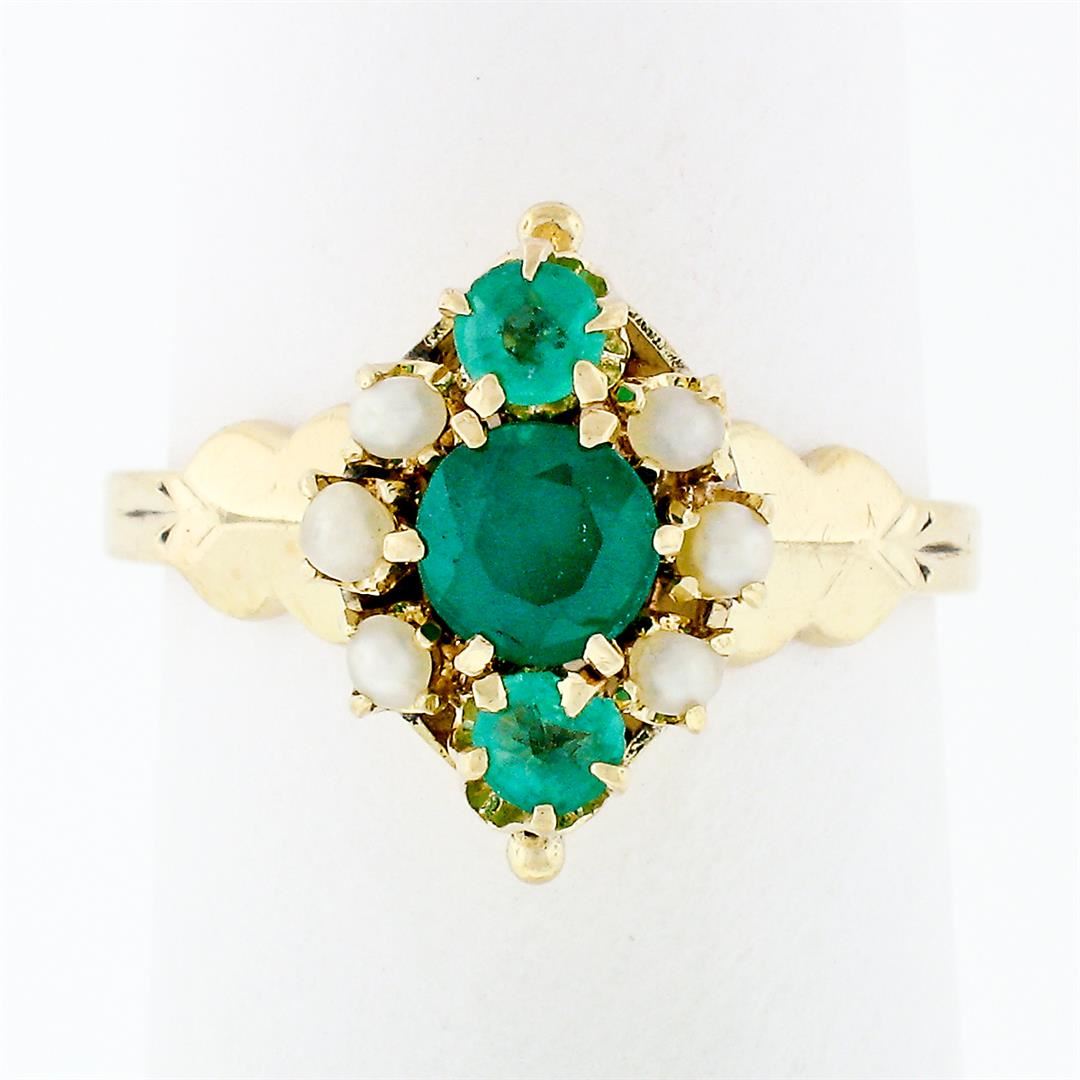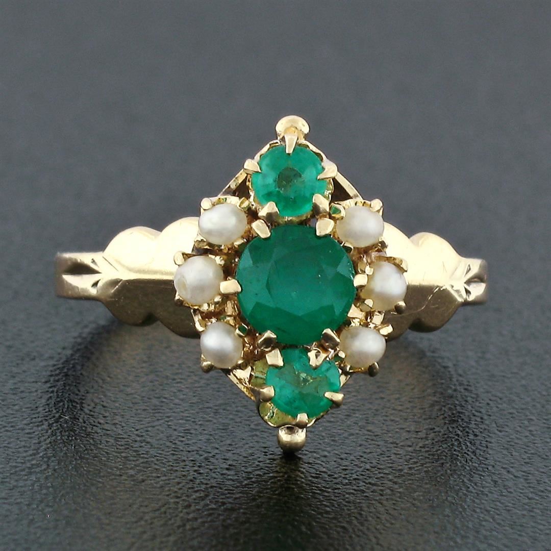 Antique Victorian 14k Gold 0.42 ctw Round Emerald 1.7mm Pearl Petite Cluster Rin