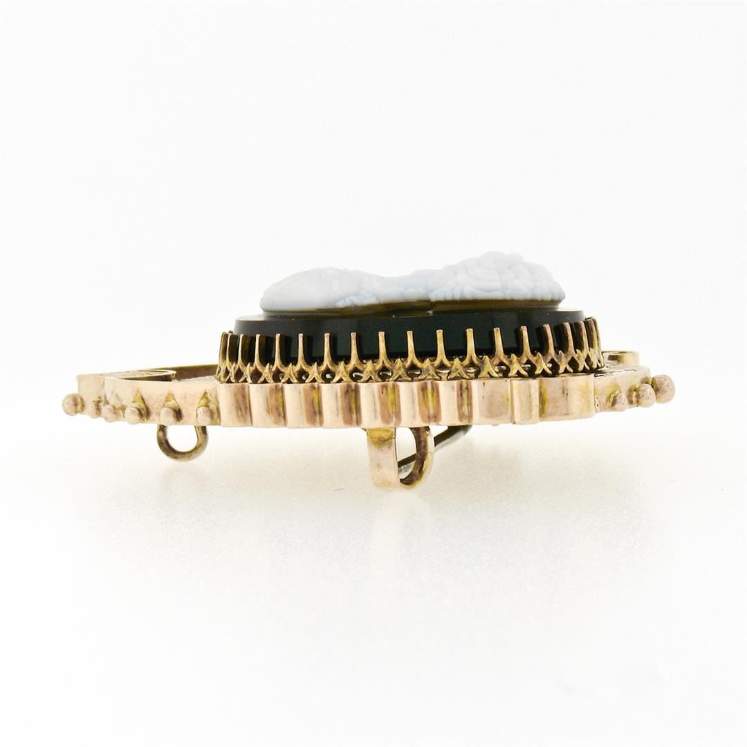 Antique Victorian 14k Gold Oval Black & White Carved Cameo Brooch & Earrings Set