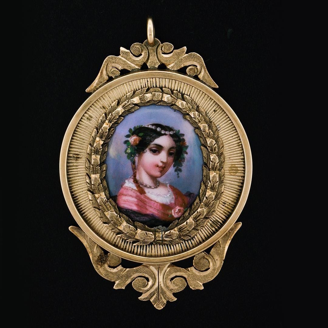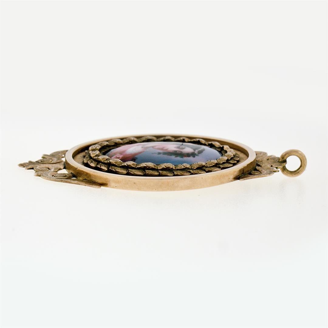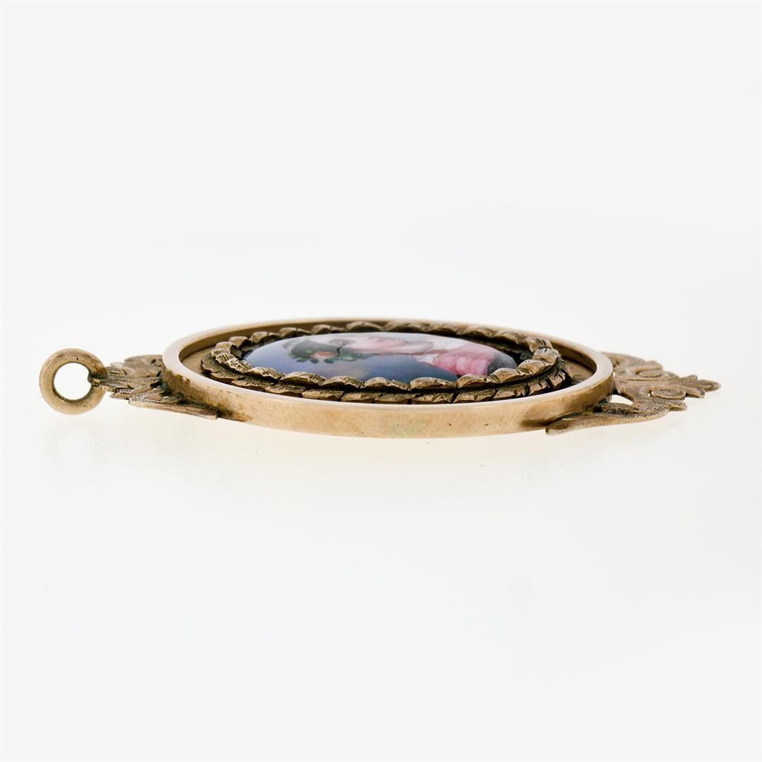 Antique Victorian 14k Rose Gold Large Detailed Hand Painted Medallion Pendant