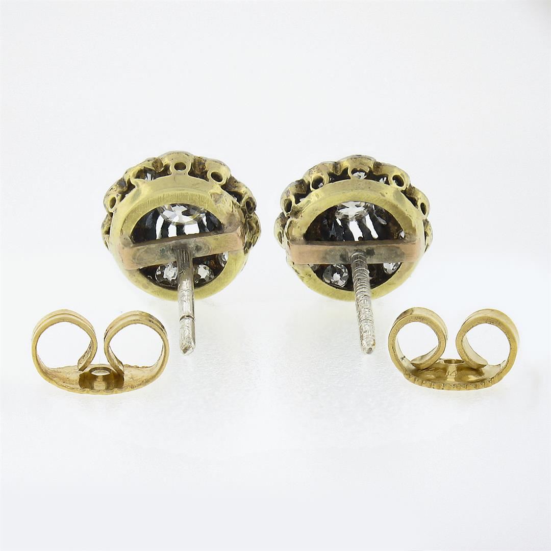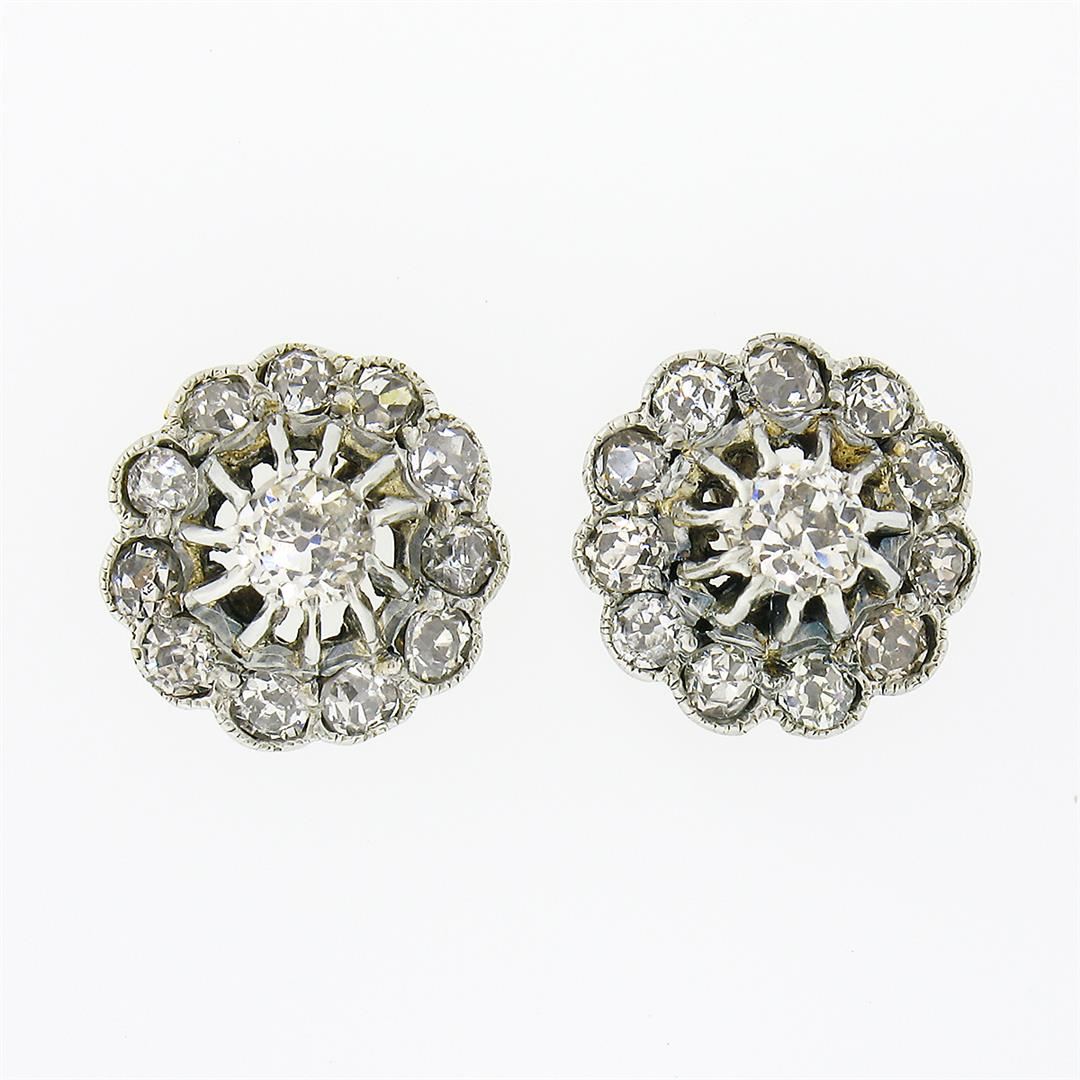 An antique solid 14k yellow and white gold stud earrings, with 24 old mine and single cut natural diamonds (G/H - VS1-SI1 ; 0.55ctw). The earrings measure approximately 8.3mm in diameter and weigh a total of 1.60 grams.