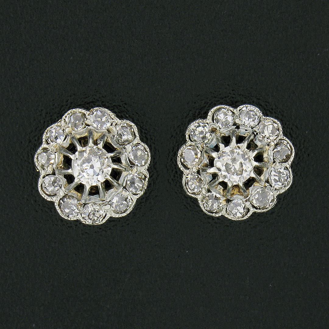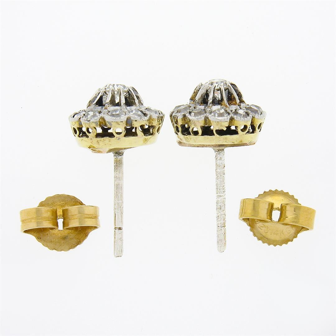 An antique solid 14k yellow and white gold stud earrings, with 24 old mine and single cut natural diamonds (G/H - VS1-SI1 ; 0.55ctw). The earrings measure approximately 8.3mm in diameter and weigh a total of 1.60 grams.