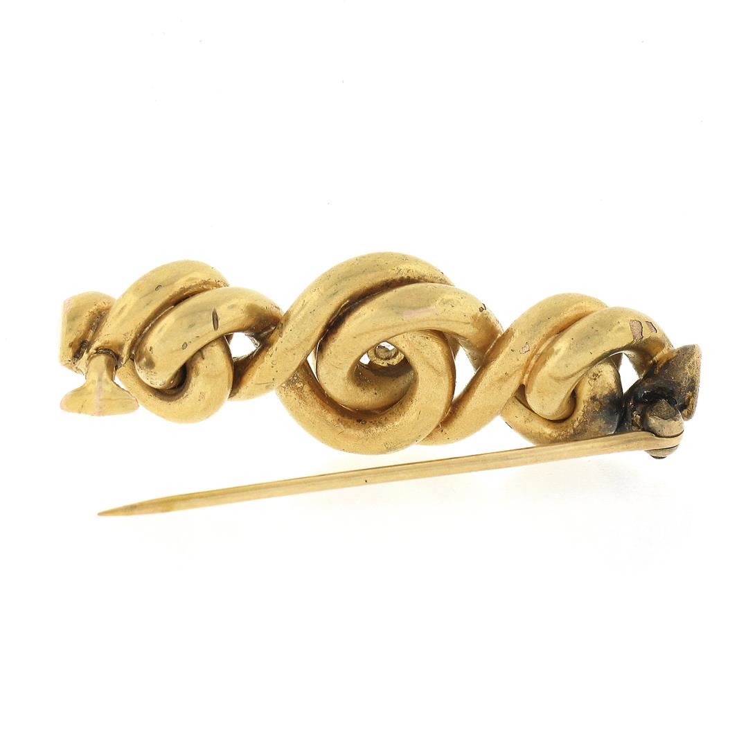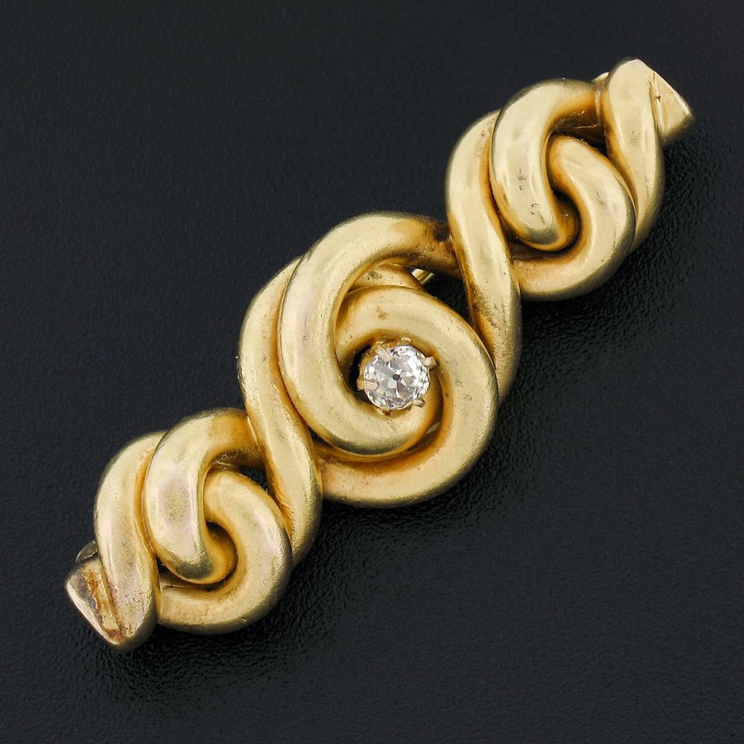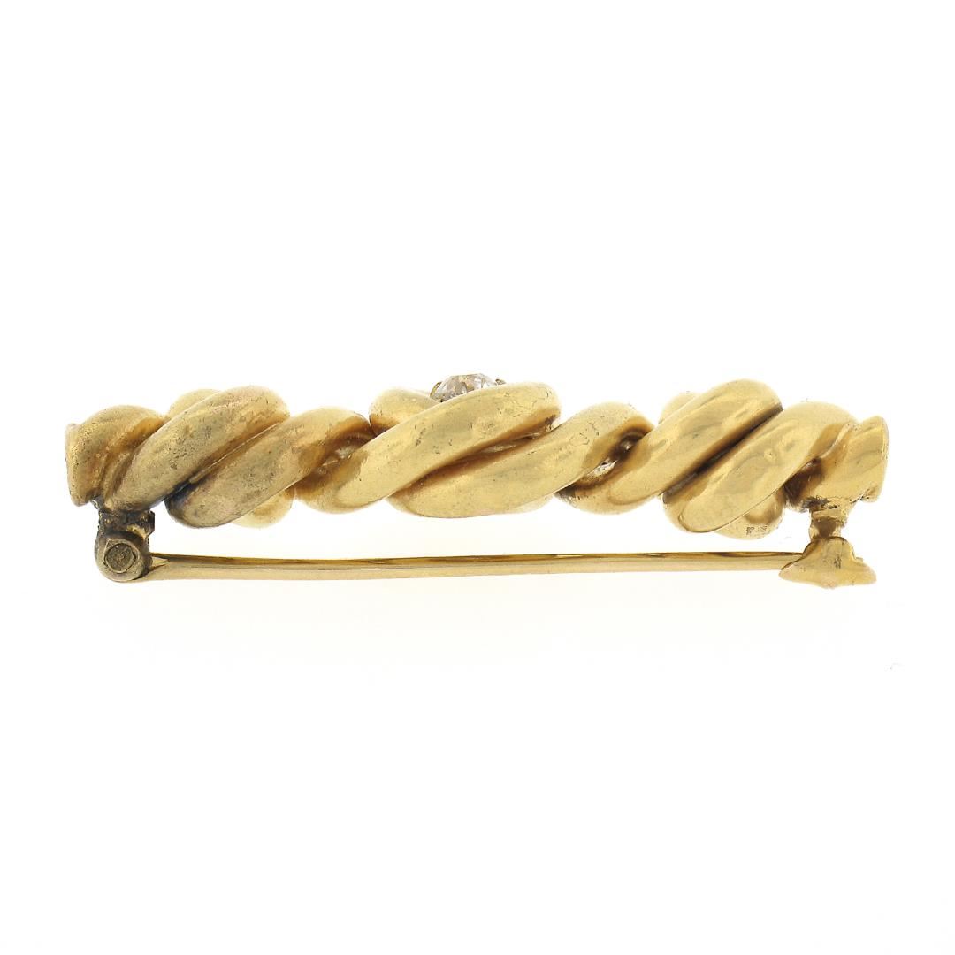 An antique solid 14k yellow gold bar brooch, with 1 old mine cut natural diamond (G - VS2 ; 0.25ct). Measures 15.40x43.50mm and weighs a total of 7.01 grams.
