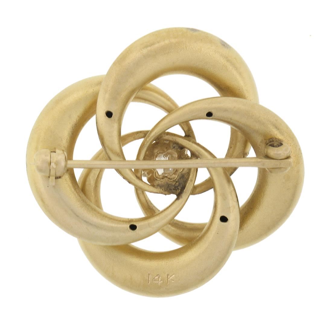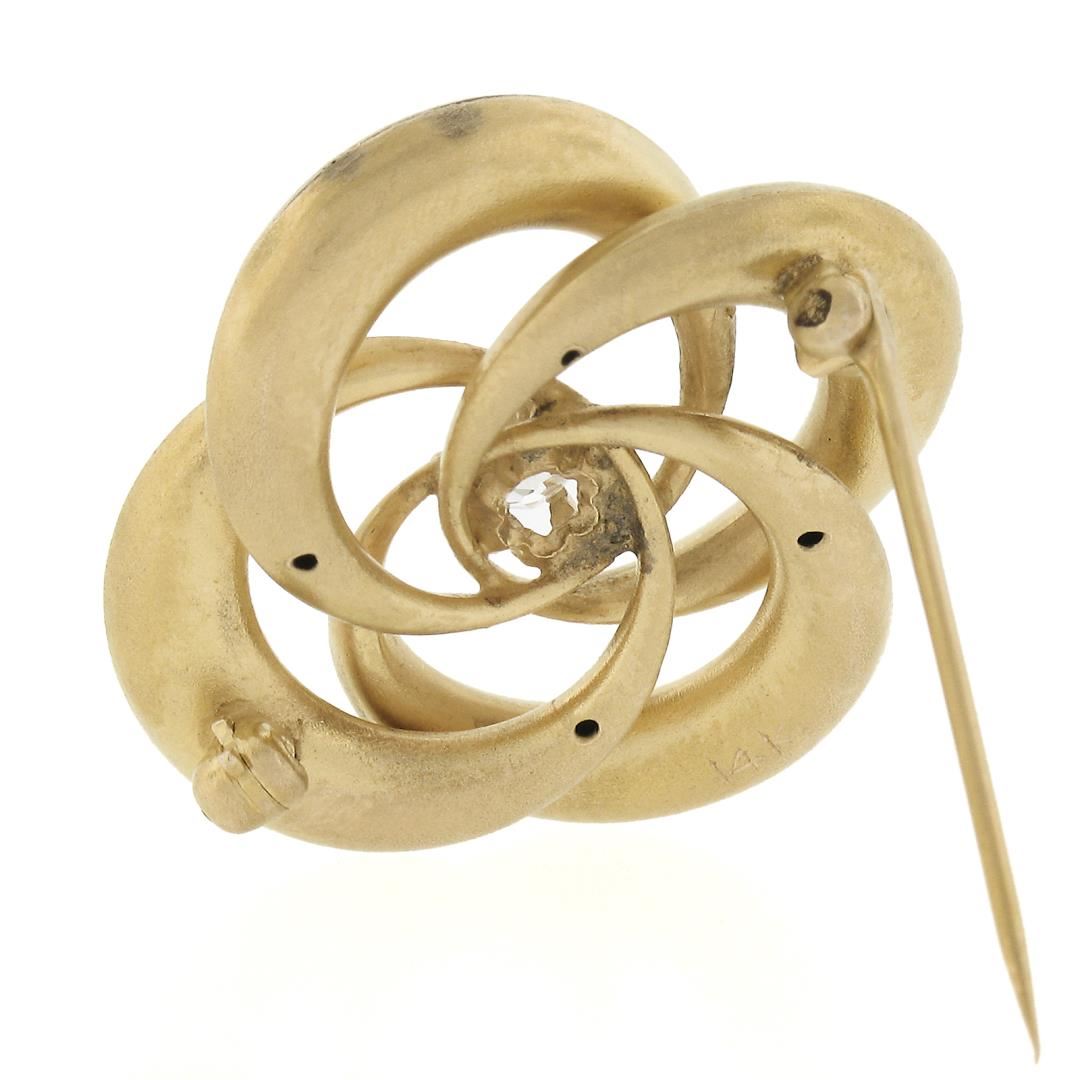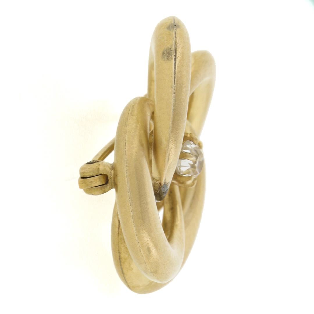An antique solid 14k yellow gold knot brooch, with 1 old mine cut natural diamond (H - I1 ; 0.27ct ). Measures 25.9x26.2mm and weighs a total of 4.79 grams.