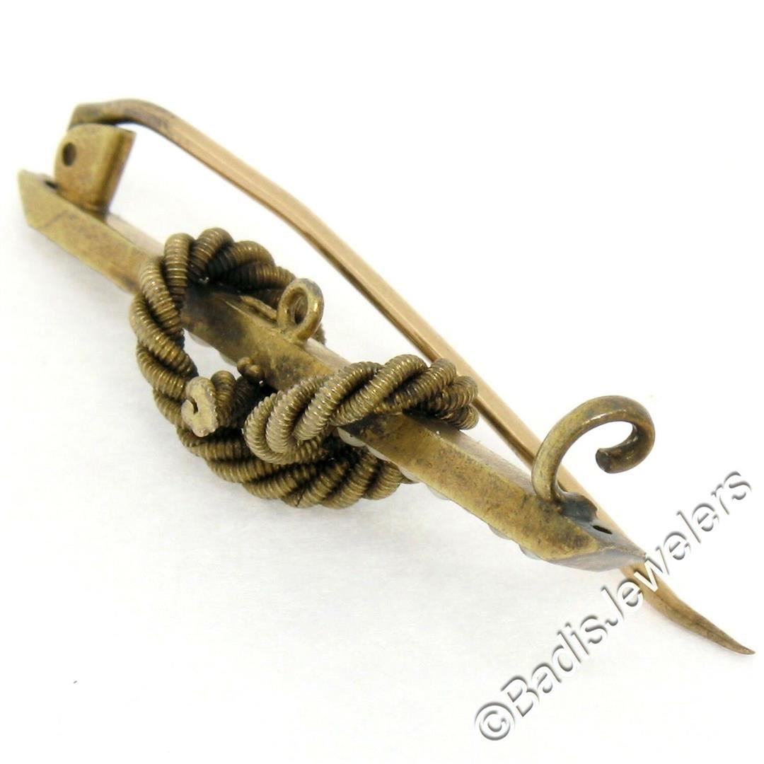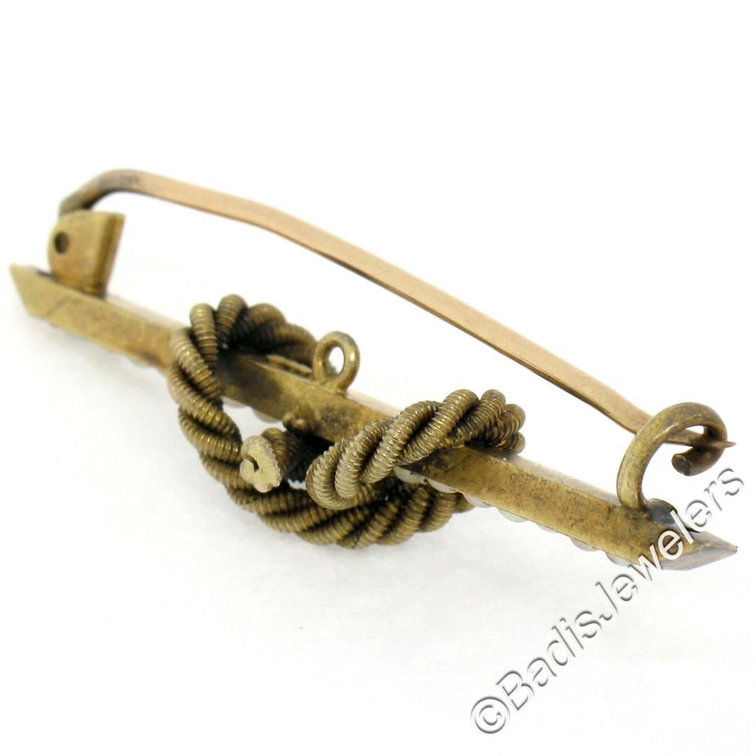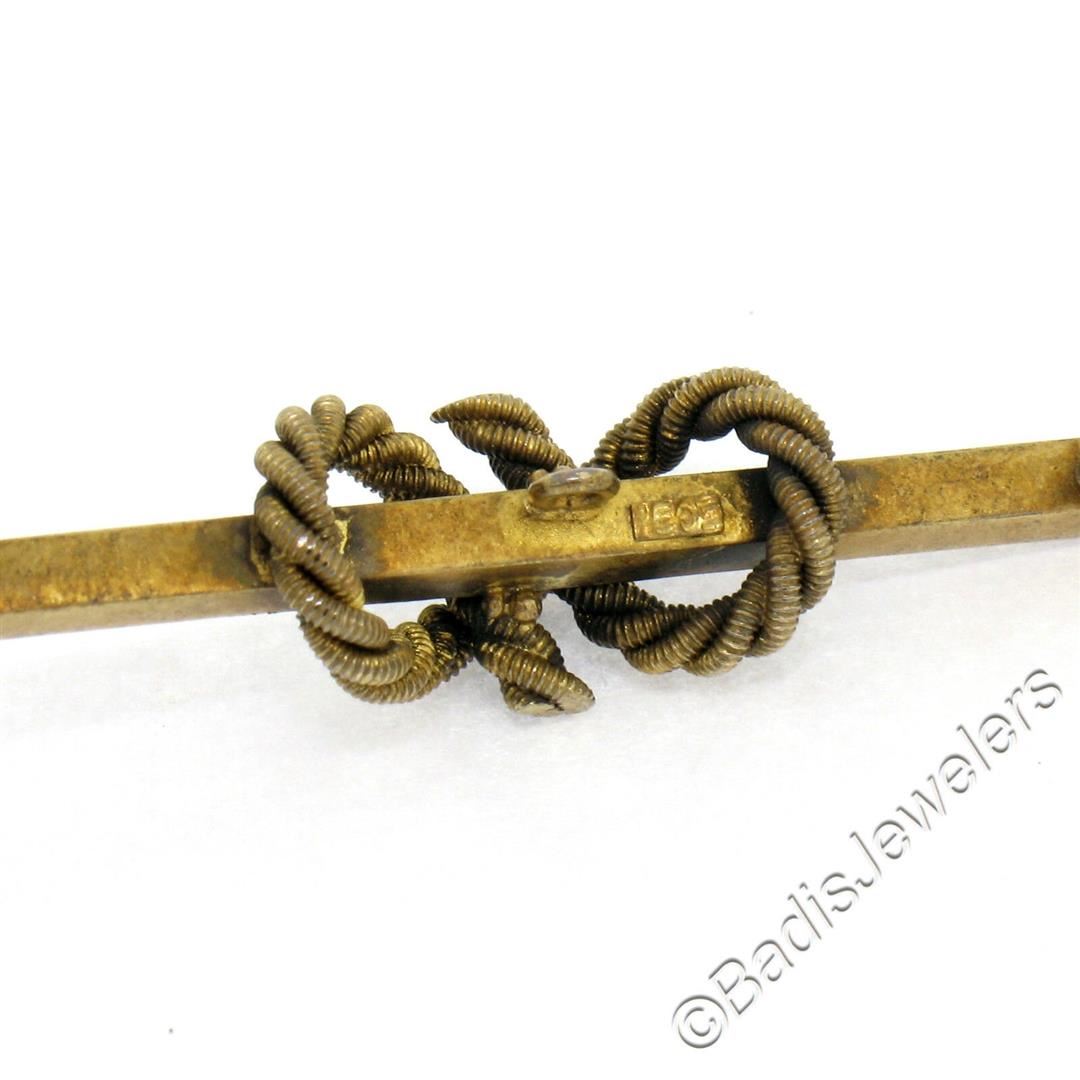 Antique Victorian 15kt Yellow Gold Seed Pearl Knot Bar Pin Brooch