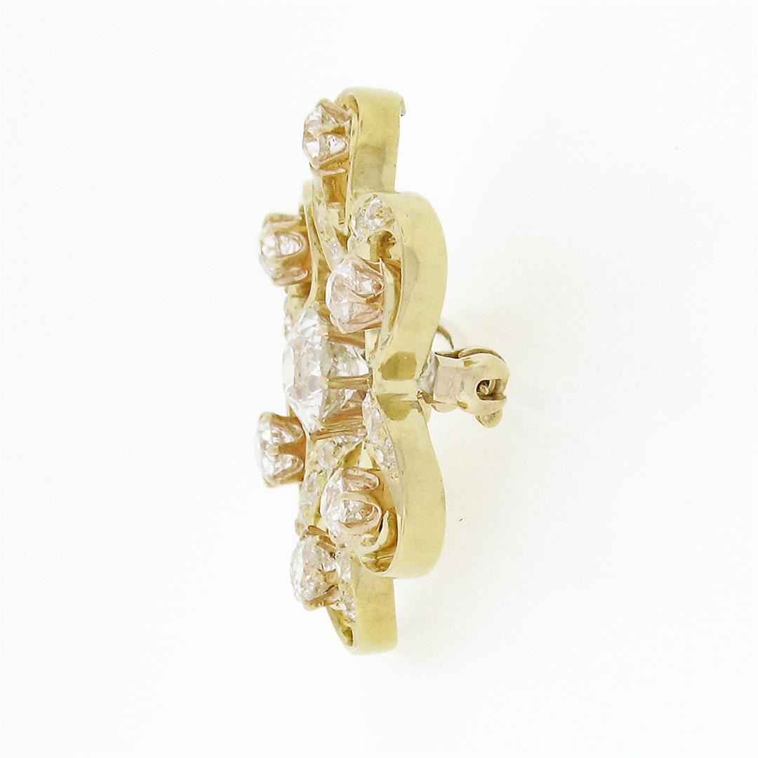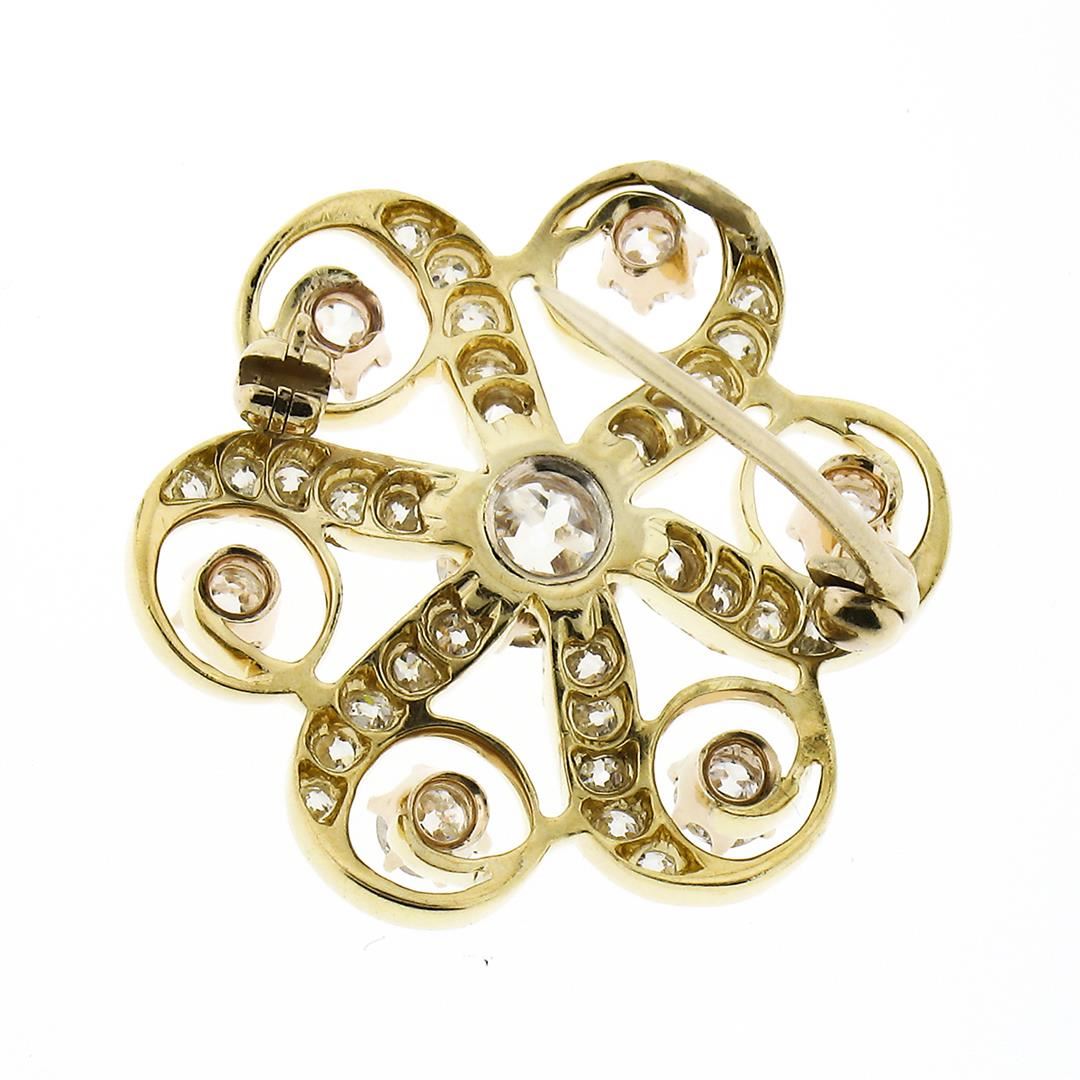An antique victorian solid 18k yellow gold swirl flower pin brooch, with 37 old european cut natural diamonds (G/H - VS2/SI1 ; 1.97ctw). Measures 25.20x22.90mm and weighs a total of 6.61 grams.