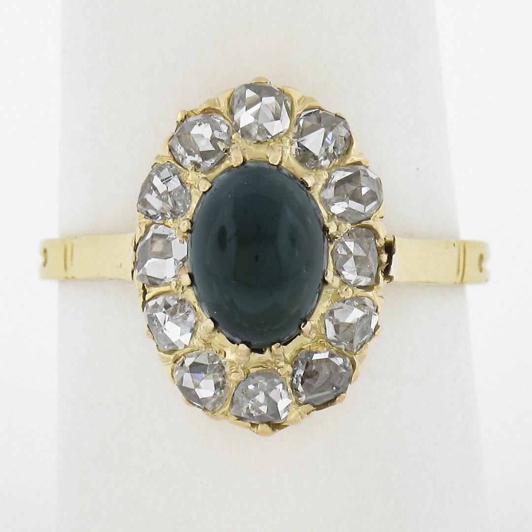 Antique Victorian 18k Gold Oval Cabochon Sapphire Old Rose Cut Diamond Halo Ring