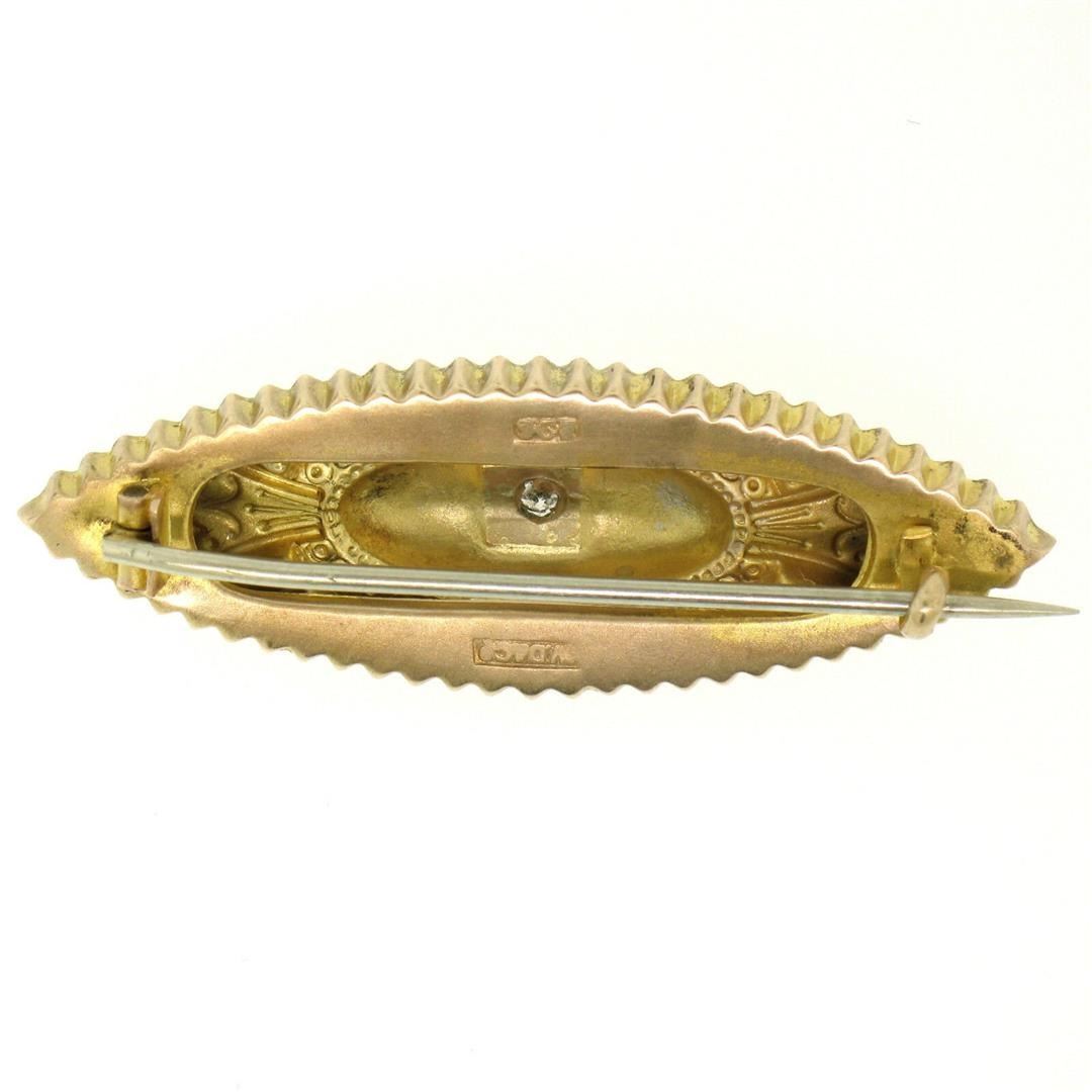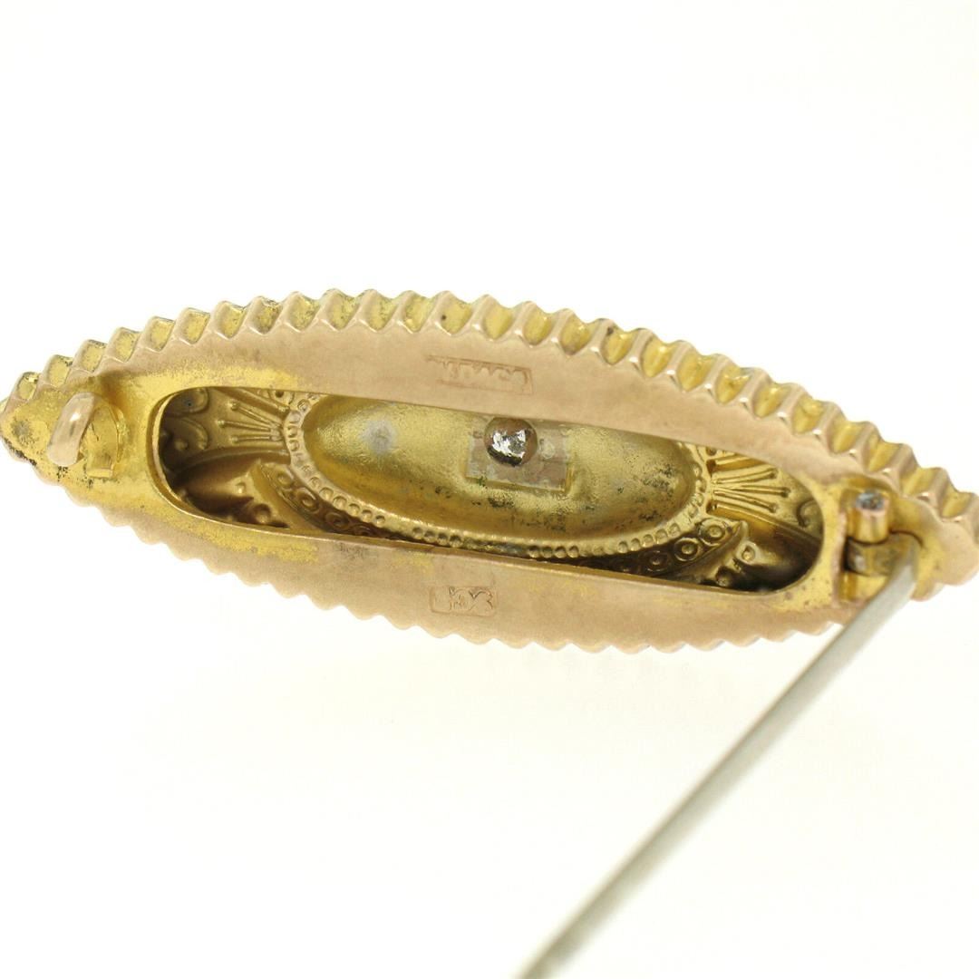 An antique victorian solid 9k yellow gold featuring 1 old mine cut natural diamond (G - VS2 ; 0.10ct). Measures 16.25x46.5mm and weighs a total of 2.80 grams.
