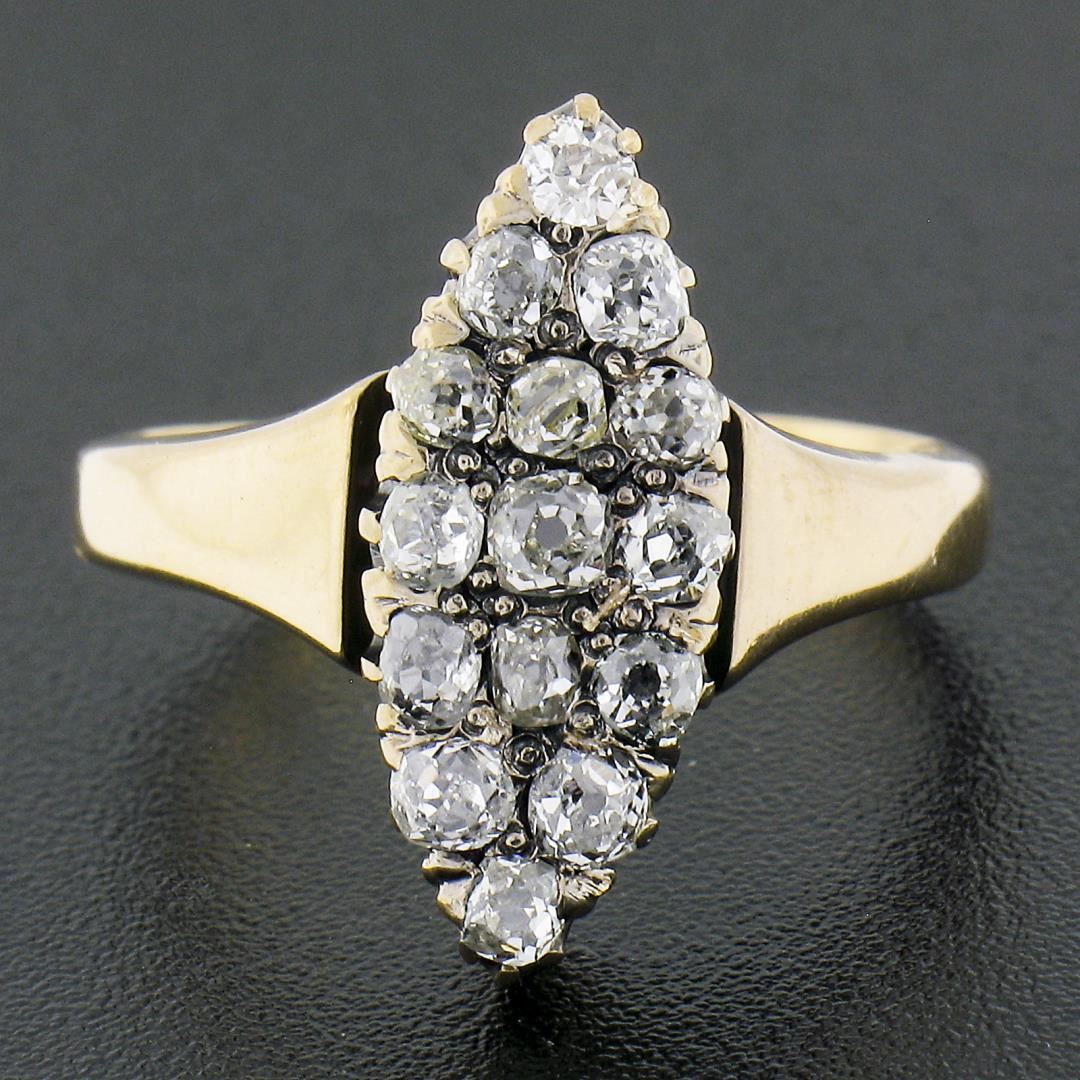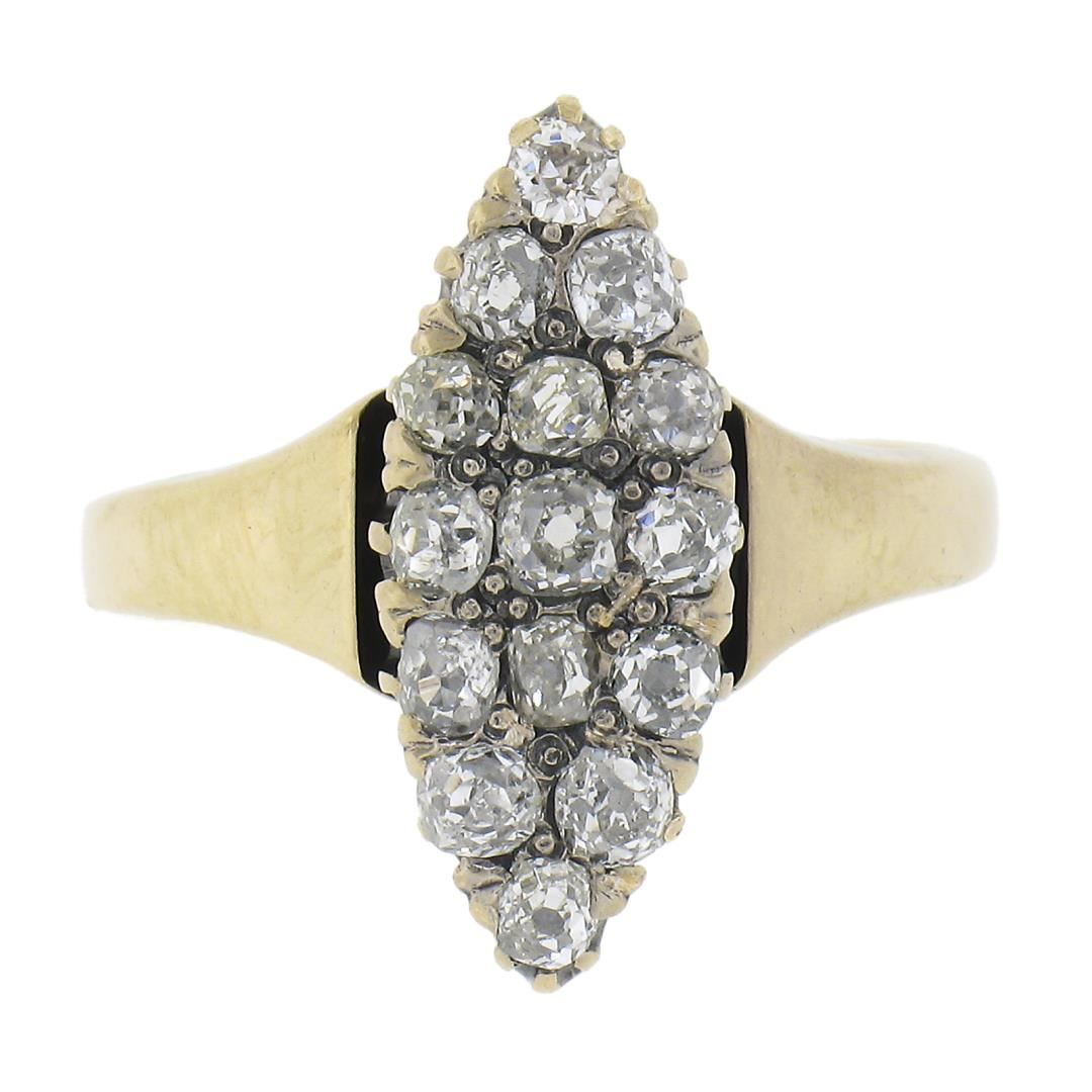 Antique Victorian Gold 1.6ct Old Mine Cut Diamond Navette Marquise Cocktail Ring