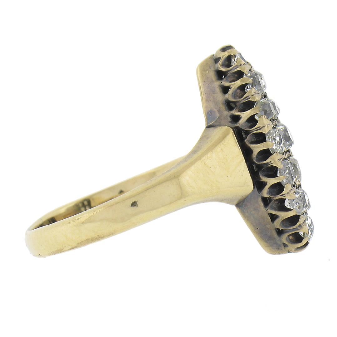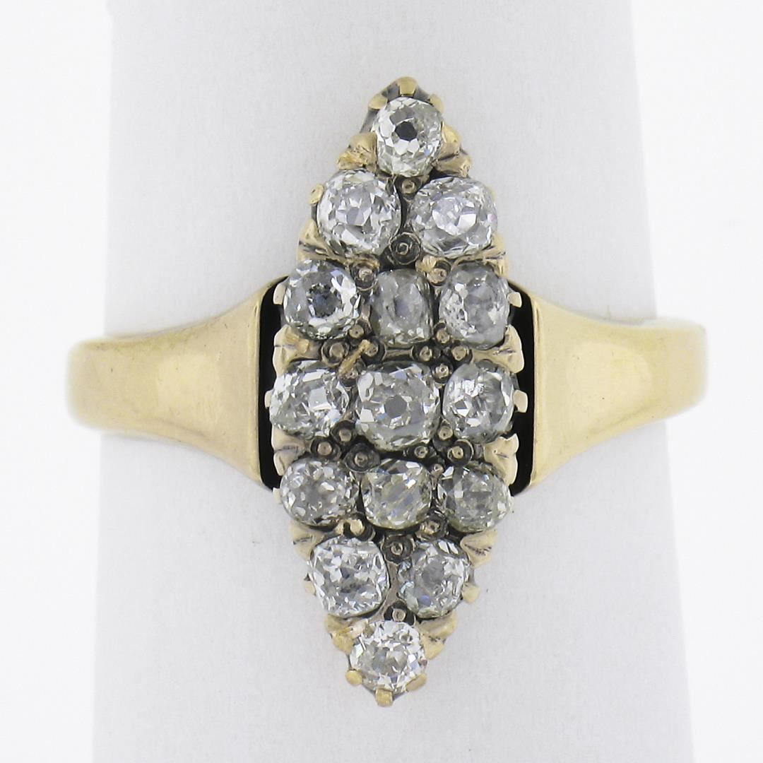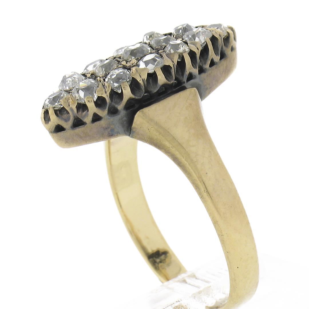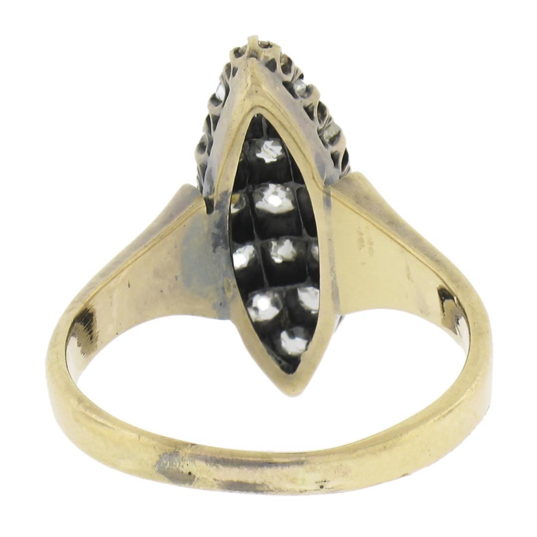 Antique Victorian Gold 1.6ct Old Mine Cut Diamond Navette Marquise Cocktail Ring