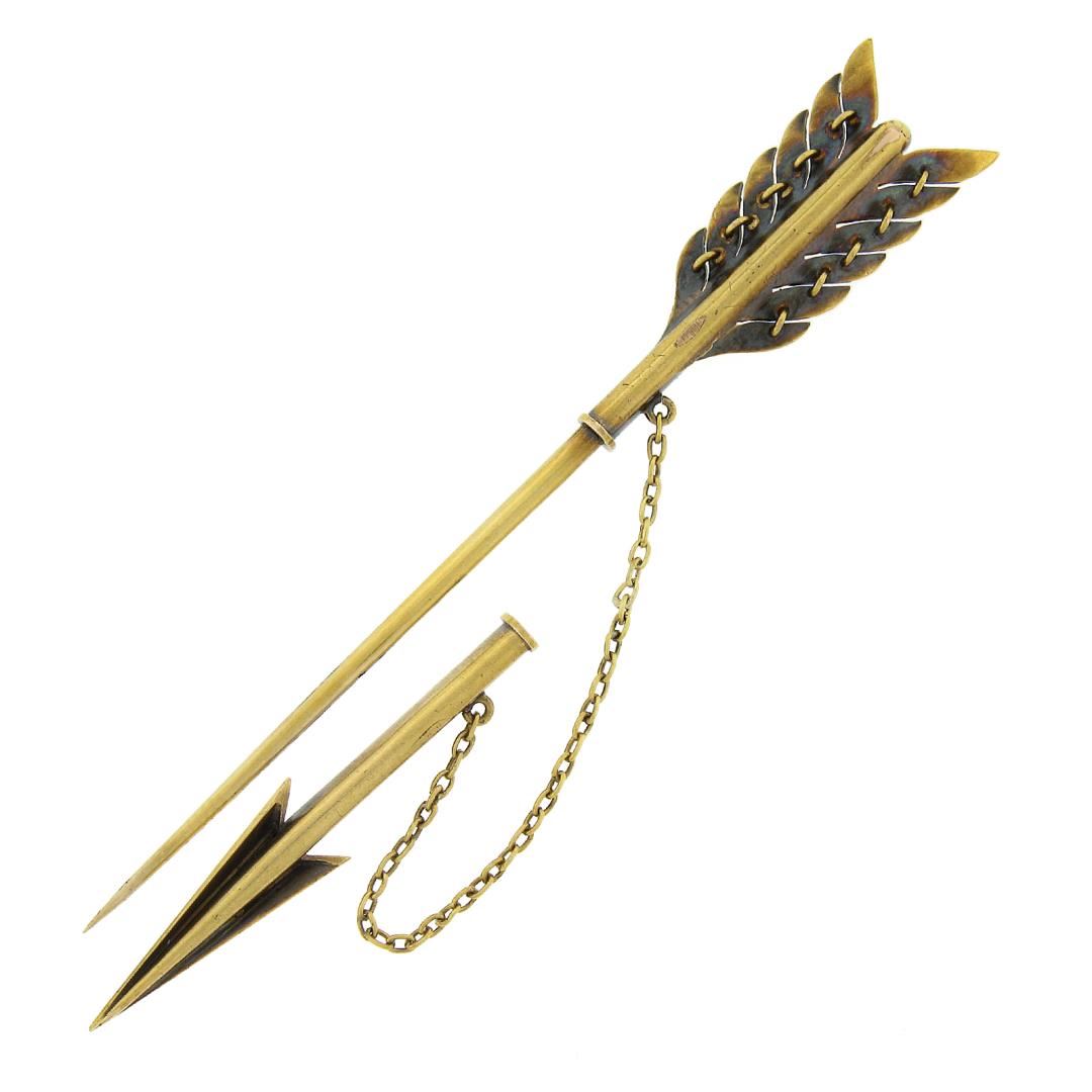 An antique solid 14k ylelow gold stick pin brooch, with 24 round shape cultured seed pearls (1.7mm to 1.9mm each). Measures 89.9x13.1mm and weighs a total of 5.71 grams.