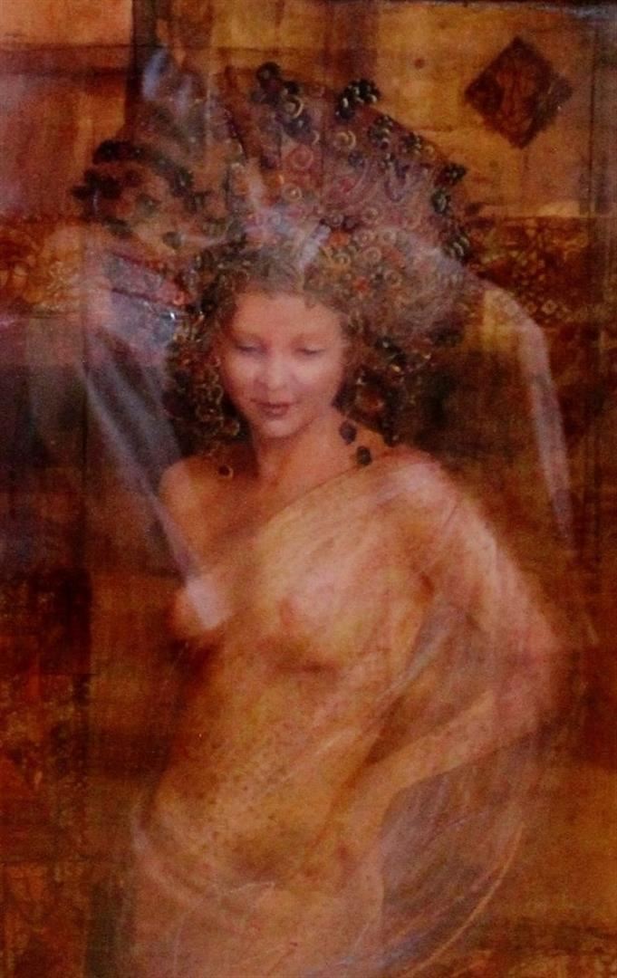 Aphrodites Dreams by Csaba Markus is a framed original on paper with a shadowy vision of Aphrodite. The size is 46" x 26".