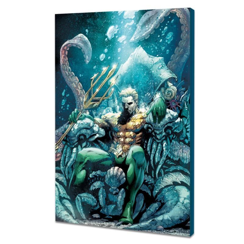 "Aquaman #18" is a limited edition giclee on canvas featuring art by Paul Pelletier from the 2013 comic. This piece comes gallery wrapped and includes a certificate of authenticity. Measures approximately 24" x 16" (image). This item requires special handling and may have a longer than usual turnaround.