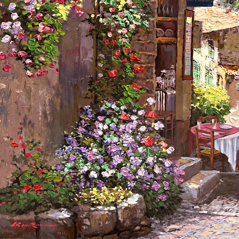 "Arches De Cagnes" is a hand embellished limited edition publisher's proof on stretched canvas by Sam Park, numbered 1/1 and hand signed by the artist. Includes Letter of Authenticity. Measures approx. 38" x 52" (image). There is minor wear on the corners and edges (chipping and/or hairline cracks) that will be concealed when framed.