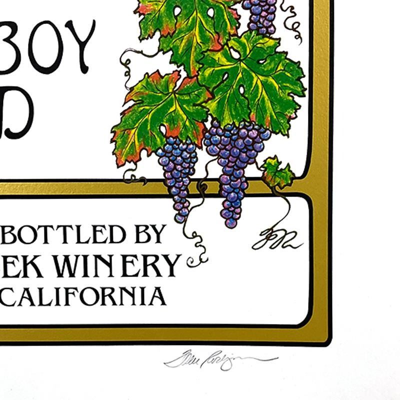 "Artevino" is a limited edition serigraph on paper by Tom Rodrigues, numbered and hand signed by the artist. Measures approx. 21" x 33" (border), 17" x 28" (image).