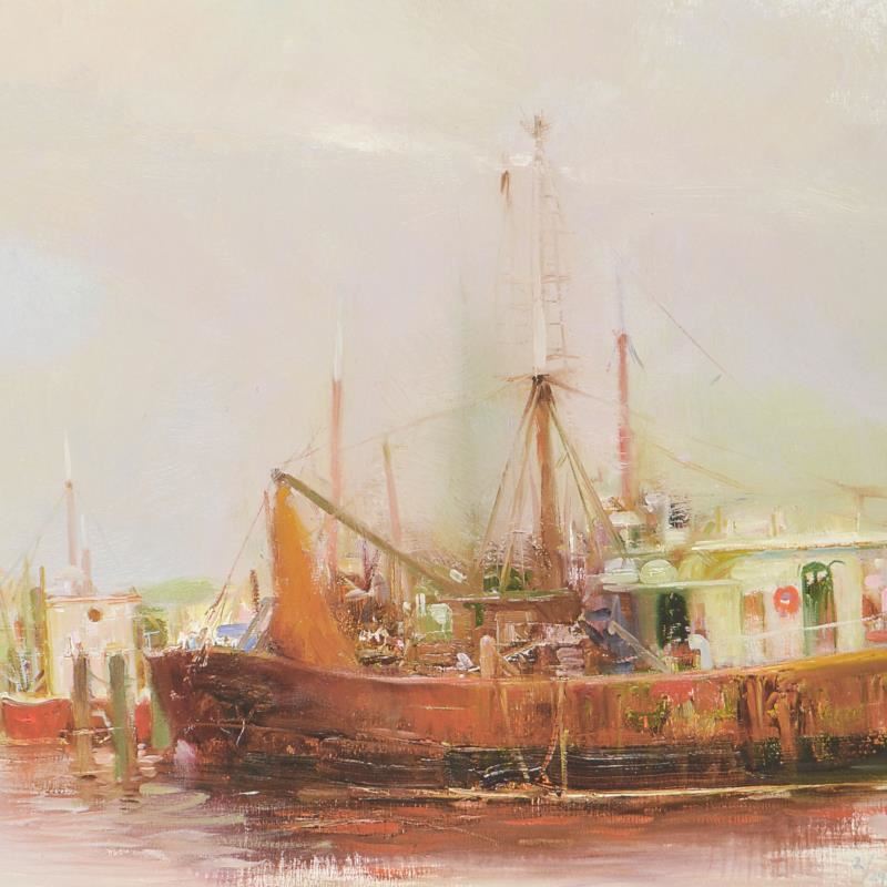 At The Dock by Pino (1939-2010). "At The Dock" is a limited edition giclee on paper by Pino (1939-2010). The piece comes numbered and is hand signed by the artist. Includes Certificate of Authenticity. Measures approximately 14" x 21"(image).
