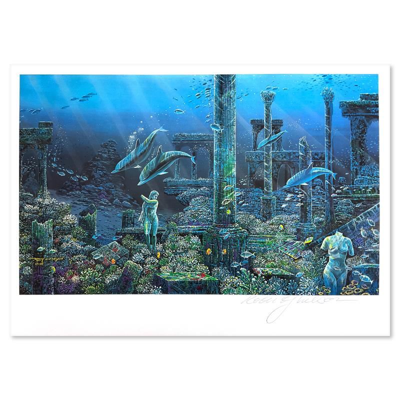 "Athenian Odyssey" is a limited edition mixed media on paper by Robert Lyn Nelson, numbered and hand signed by the artist. This piece was originally a diptych but this item is only the bottom piece. Includes Letter of Authenticity. Measures approx. 28" x 20"(border), 26" x 16" (image). ** Please note: there may be creases on the on the corners and edges of the paper. **
